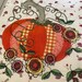 The Pumpkin is created as an appliqué design with blanket stitches and raw edges - perfect for using your yellow and orange fabric scraps ... and the decorative flowers are simple, yet beautiful made tone in tone and with a doodle-ish framing