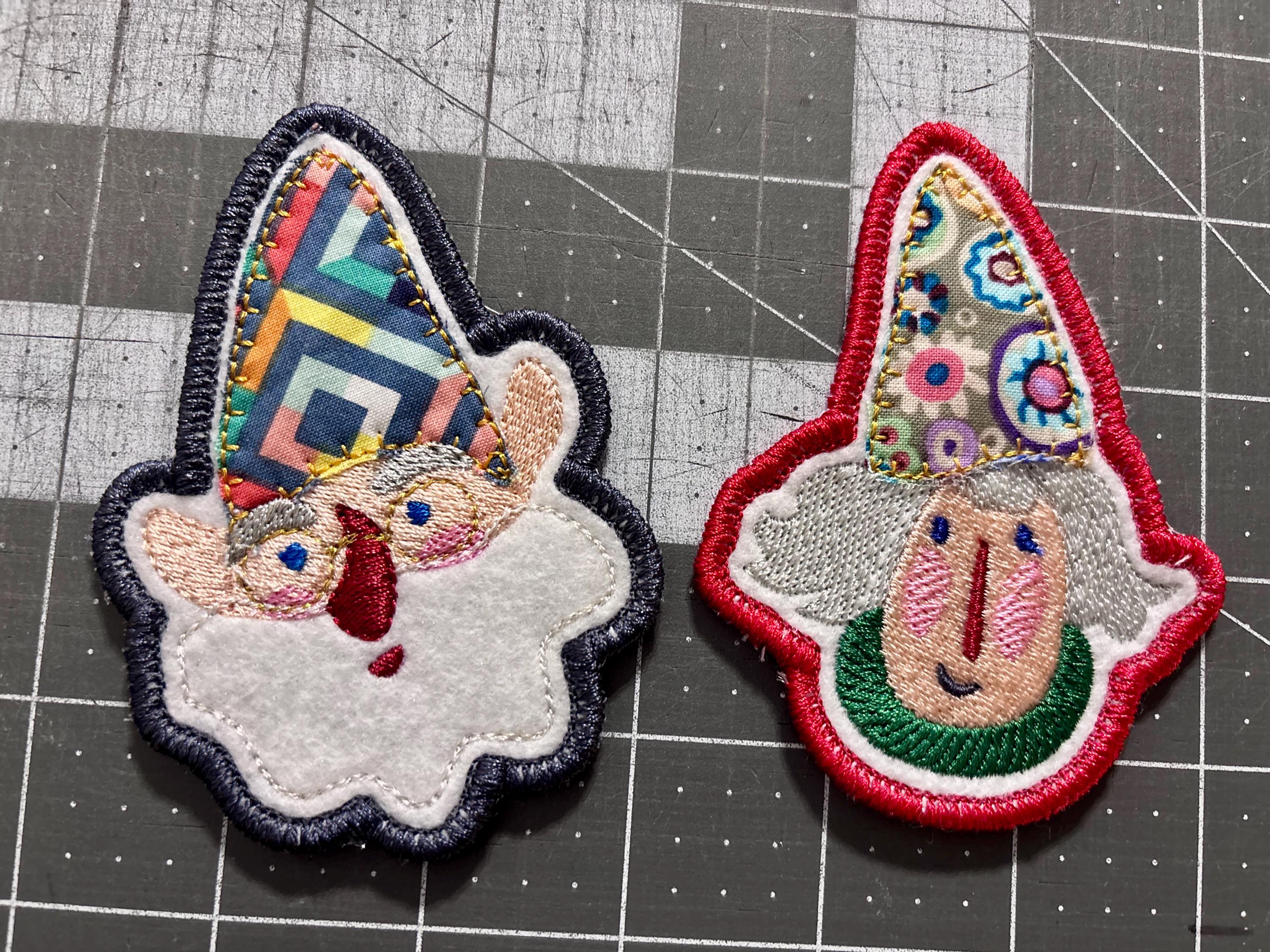 Cute Christmas tags and patches ITH to make on your embroidery machine - Danish Nissefar and Nissemor - for hoop size 5x7"