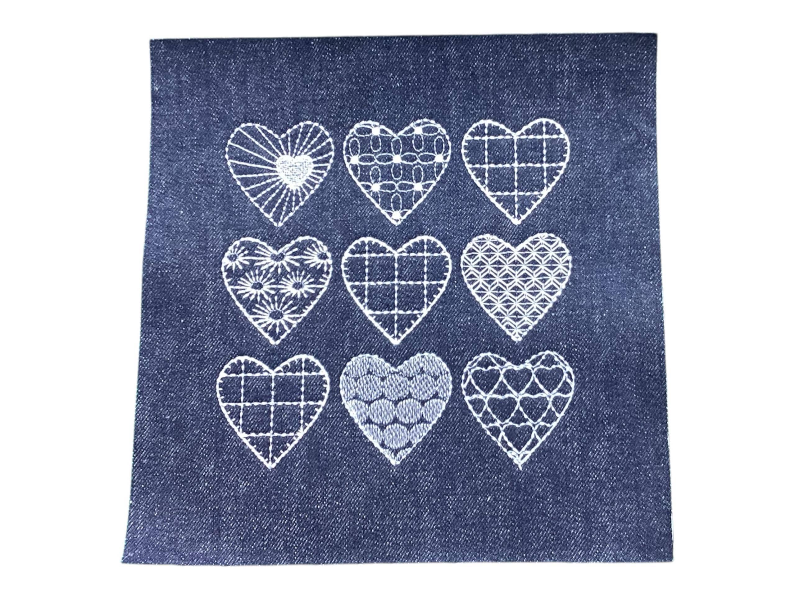 Use the hearts on their own or mix and match to create your own custom compositions. They’re also lovely paired with other Sashiko-style designs from my shop.