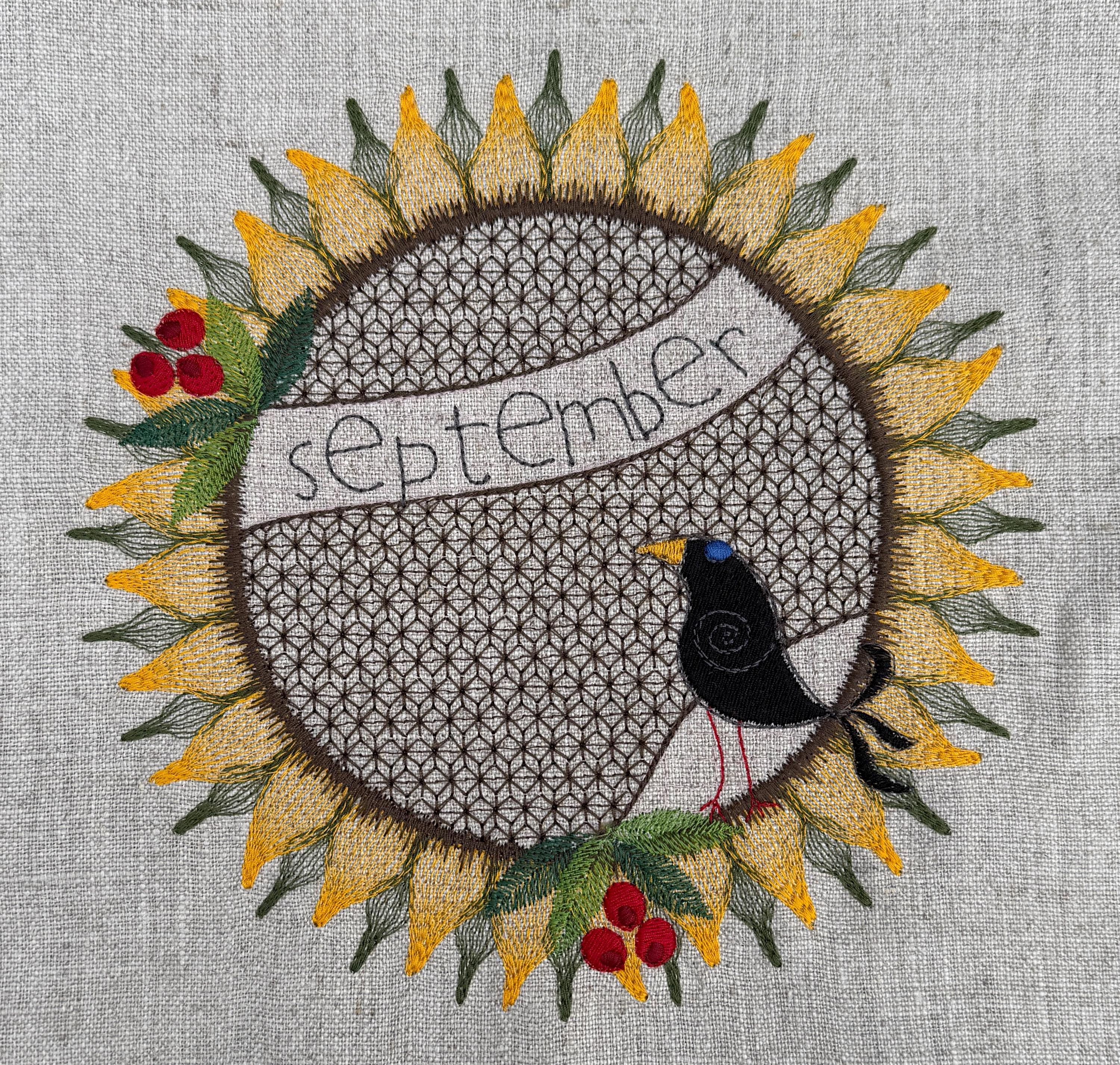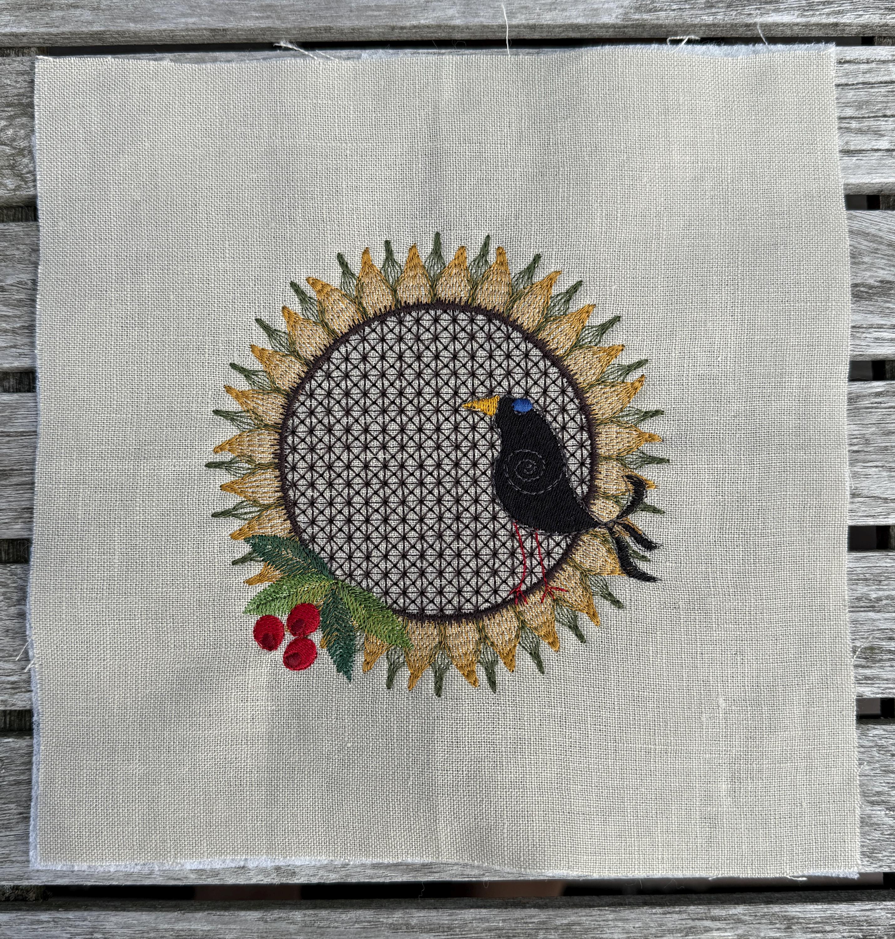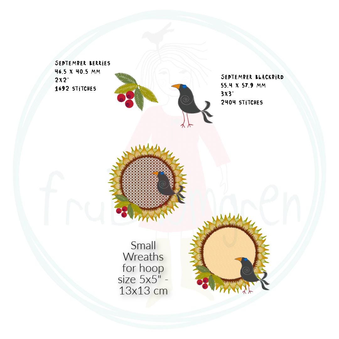 🌻 Extra motifs: the September berries (2x2”) and blackbird (3x3”)