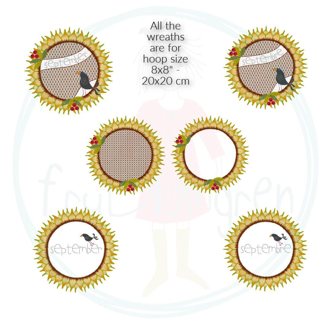 🌻 The traditional September wreath, size 8x8” (20x20 cm) – with and without berries and also as blank wreaths (frames) in which you can add your own happy, sunflower texts
