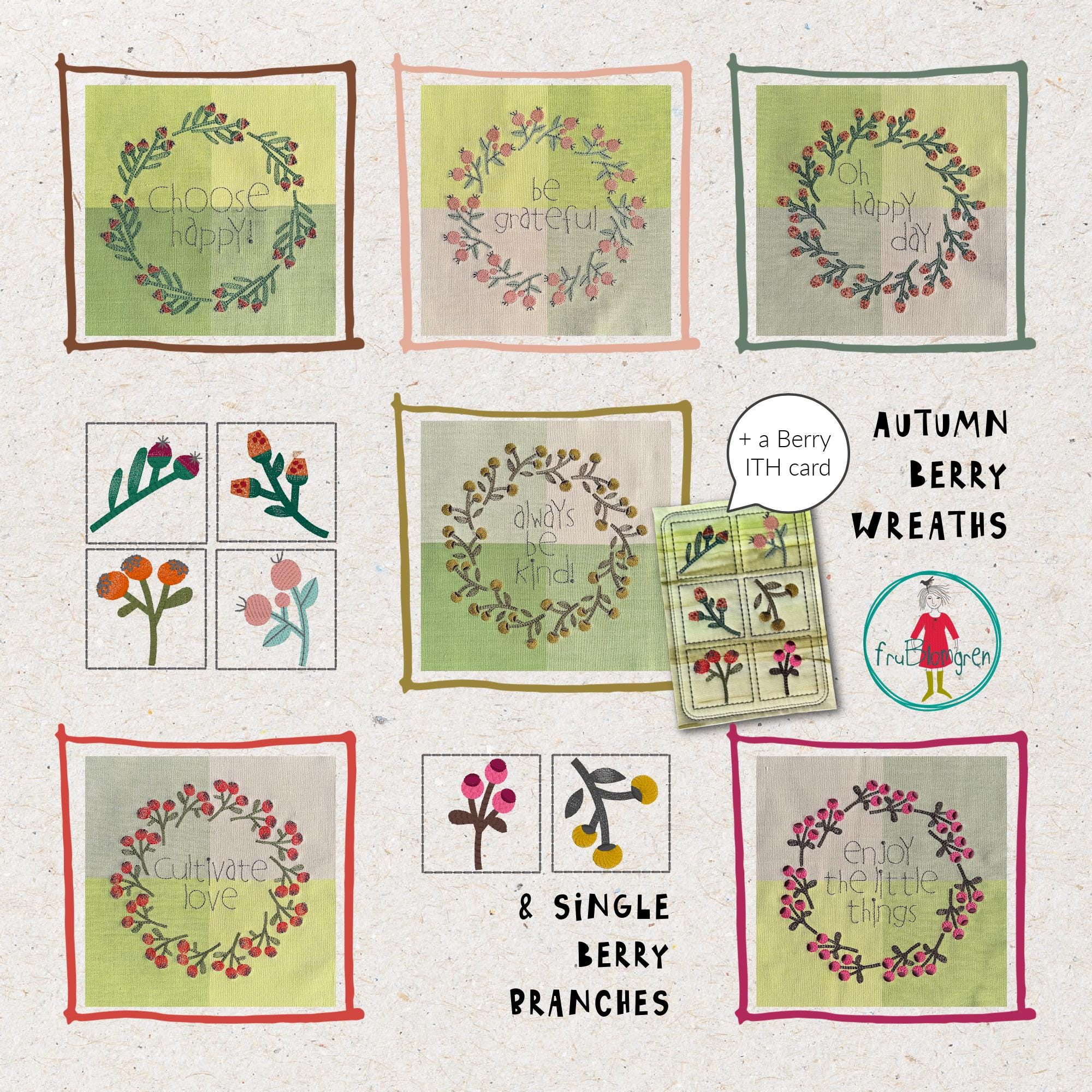 Before I created my October wreath for the #12monthsofwreaths series, I designed six different stylized berry branches in true fruBlomgren style. To test them, I stitched a full wreath from each branch type â in total six berry wreaths, each paired with a positive, uplifting text.
