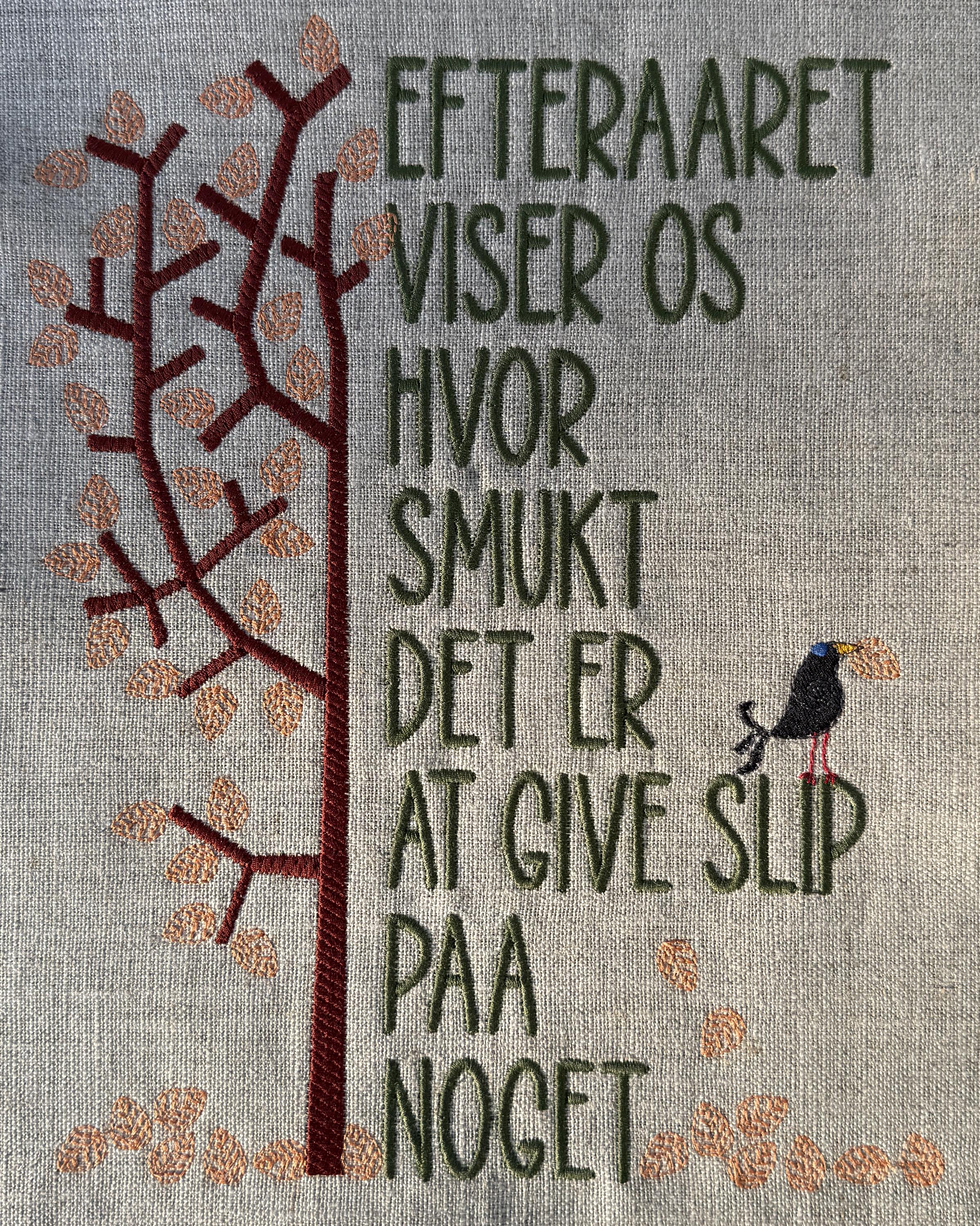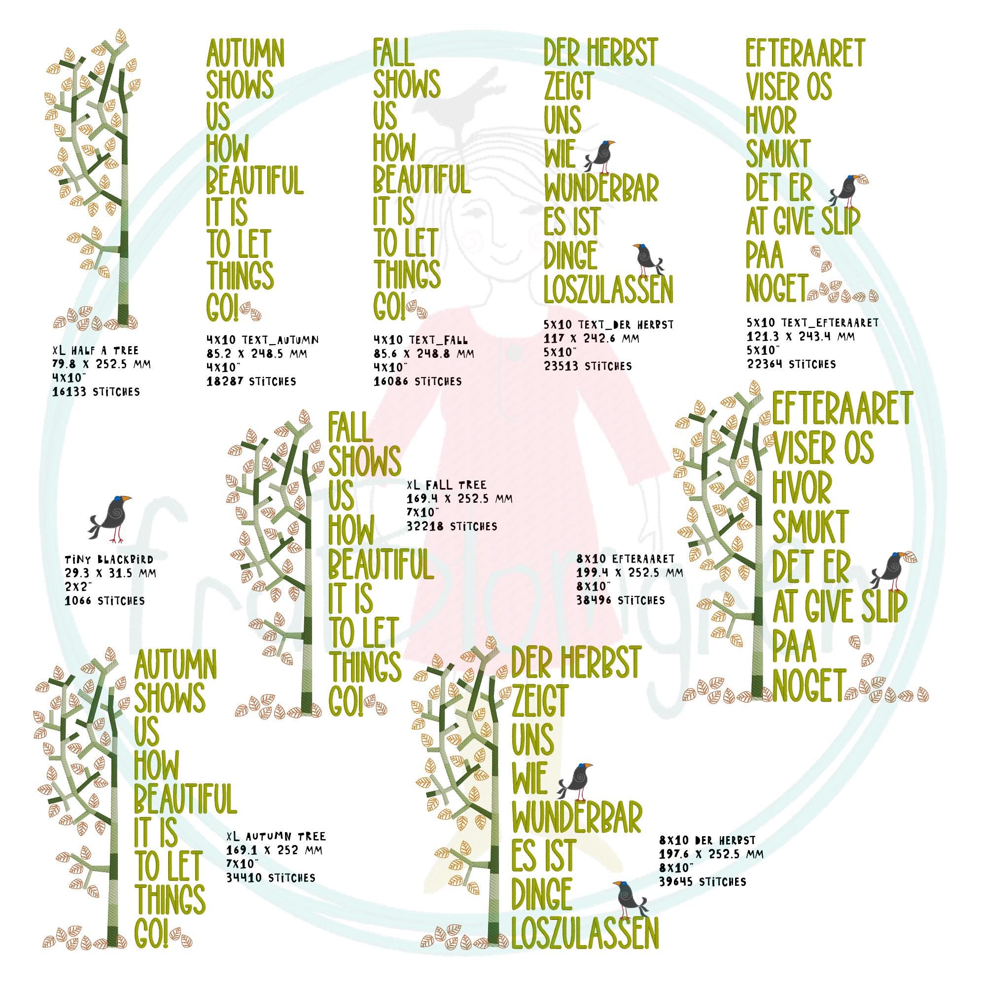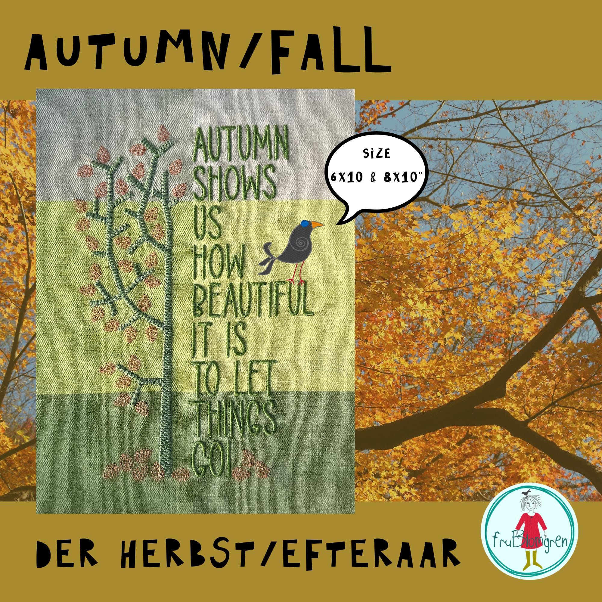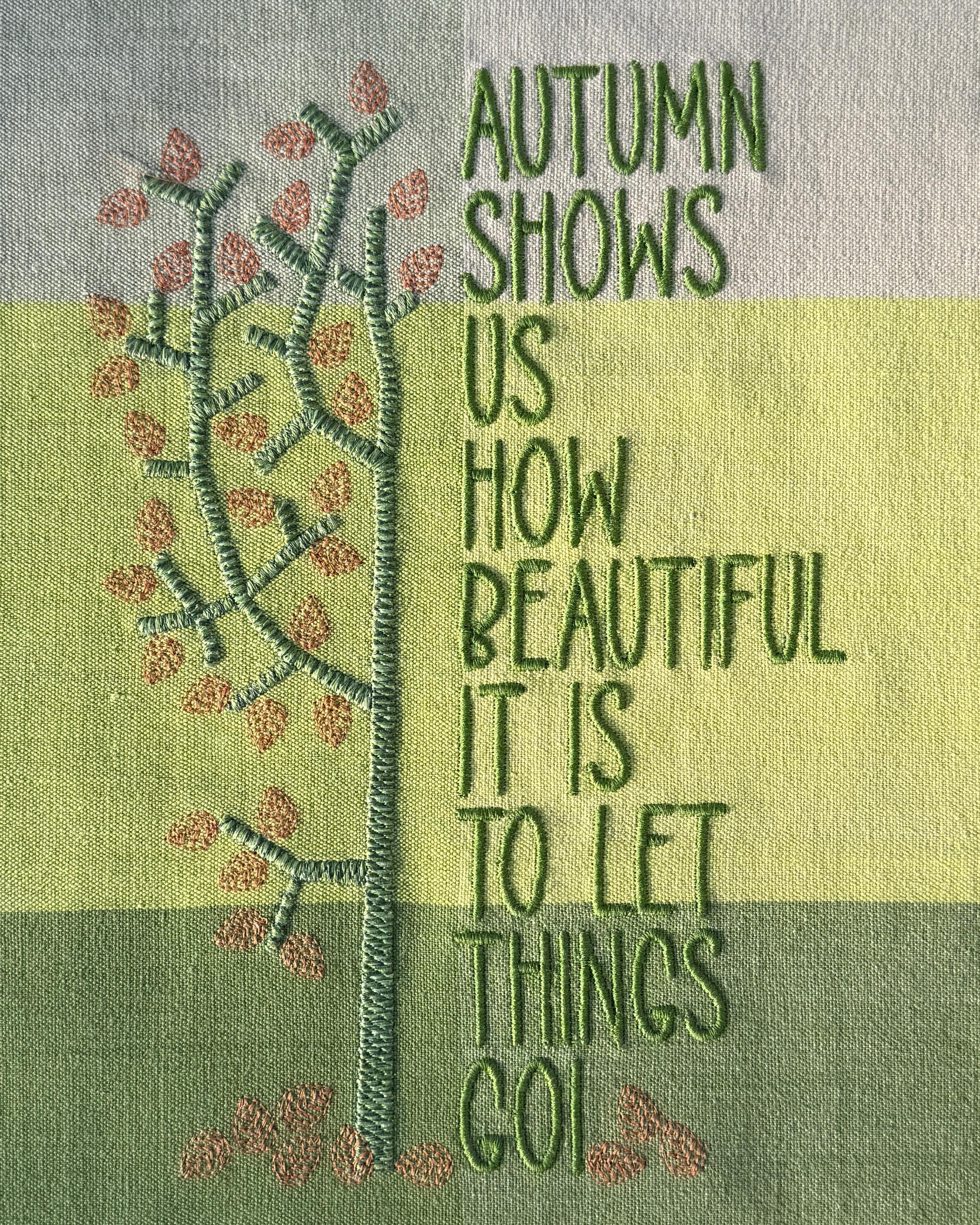 This hand-drawn embroidery design captures the gentle poetry of autumn. The tree and text are separate, so you can stitch the full motif or combine the elements in your own creative way.