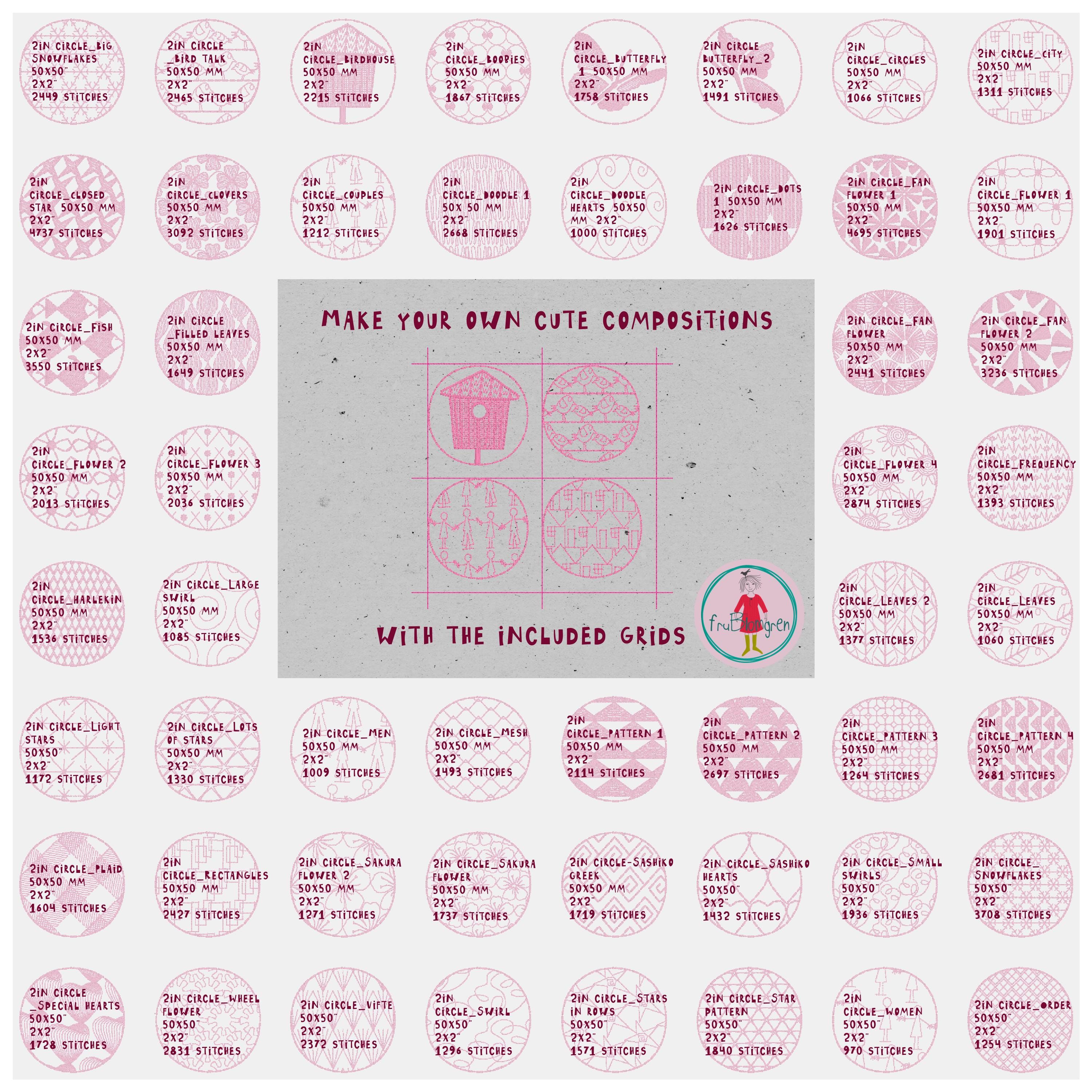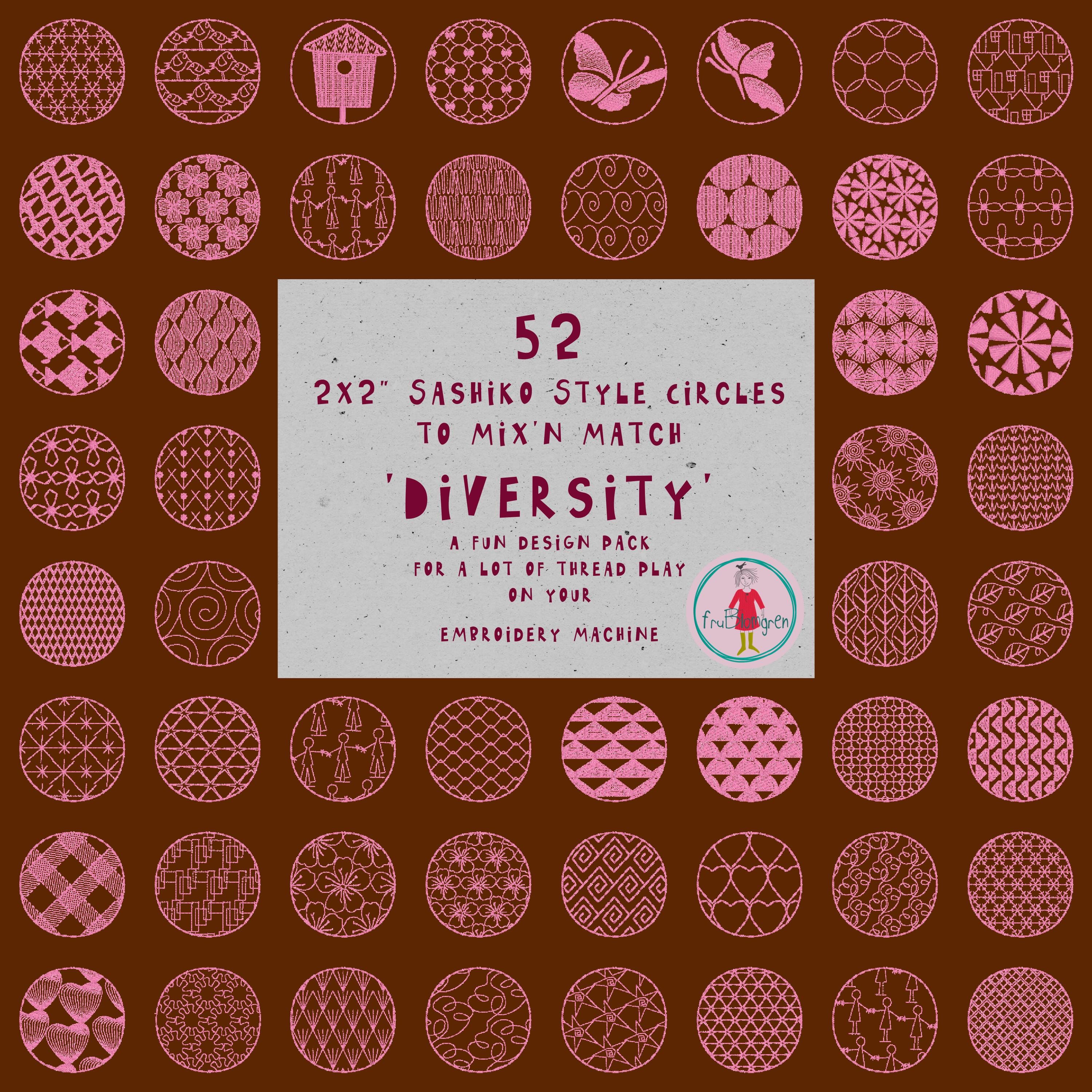 ✔️ 52 unique hand-drawn Sashiko-style circle designs (2x2")