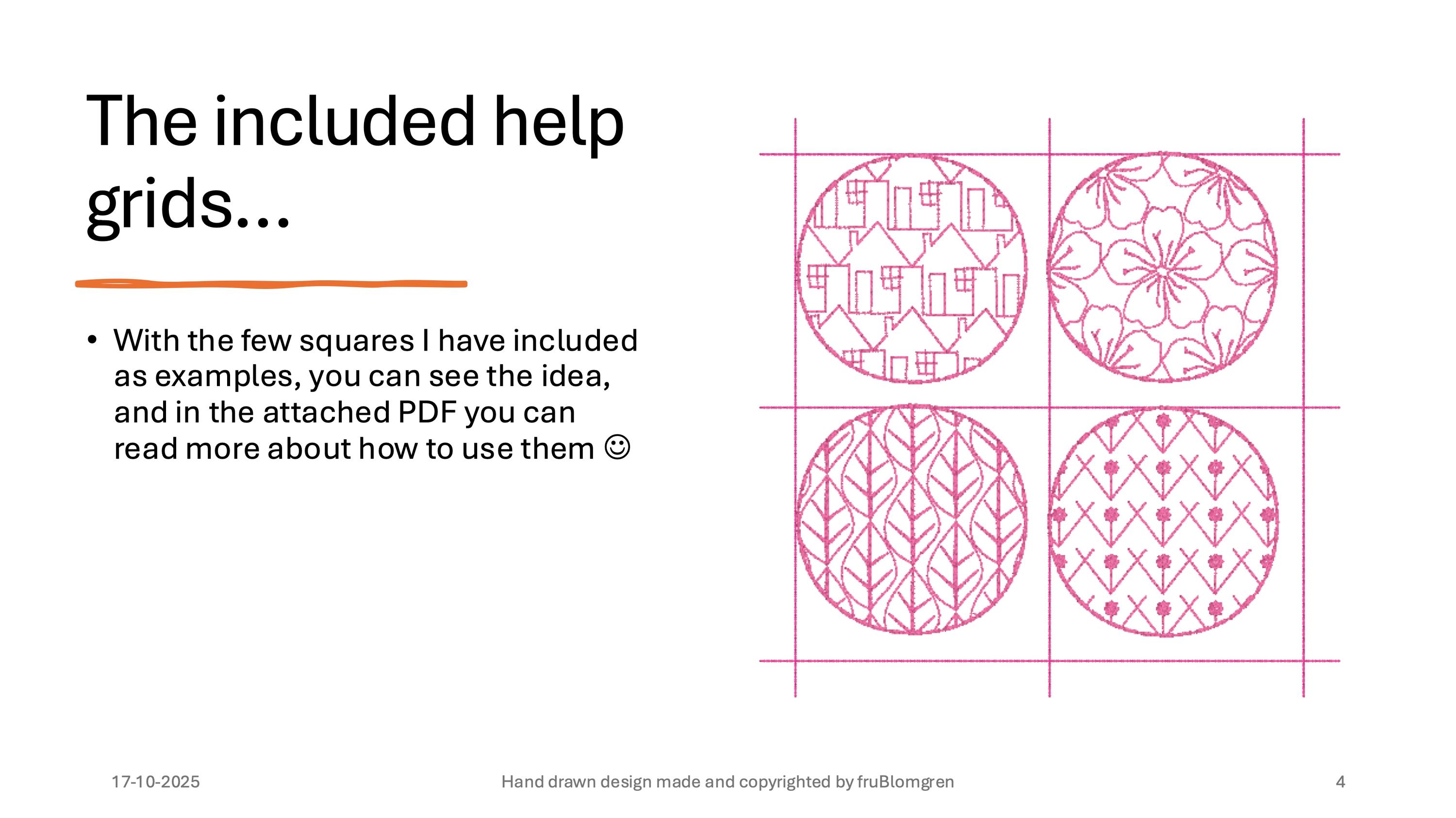 Unlike my previous square packs, these 52 hand-drawn circle motifs invite a slightly different rhythm — flowing, organic, playful. They’re made to mix, match, layer, and combine into bigger compositions or shine as single, simple statements. Inspired by Japanese Sashiko and infused with a touch of Zakka charm, this collection is pure stitching joy.