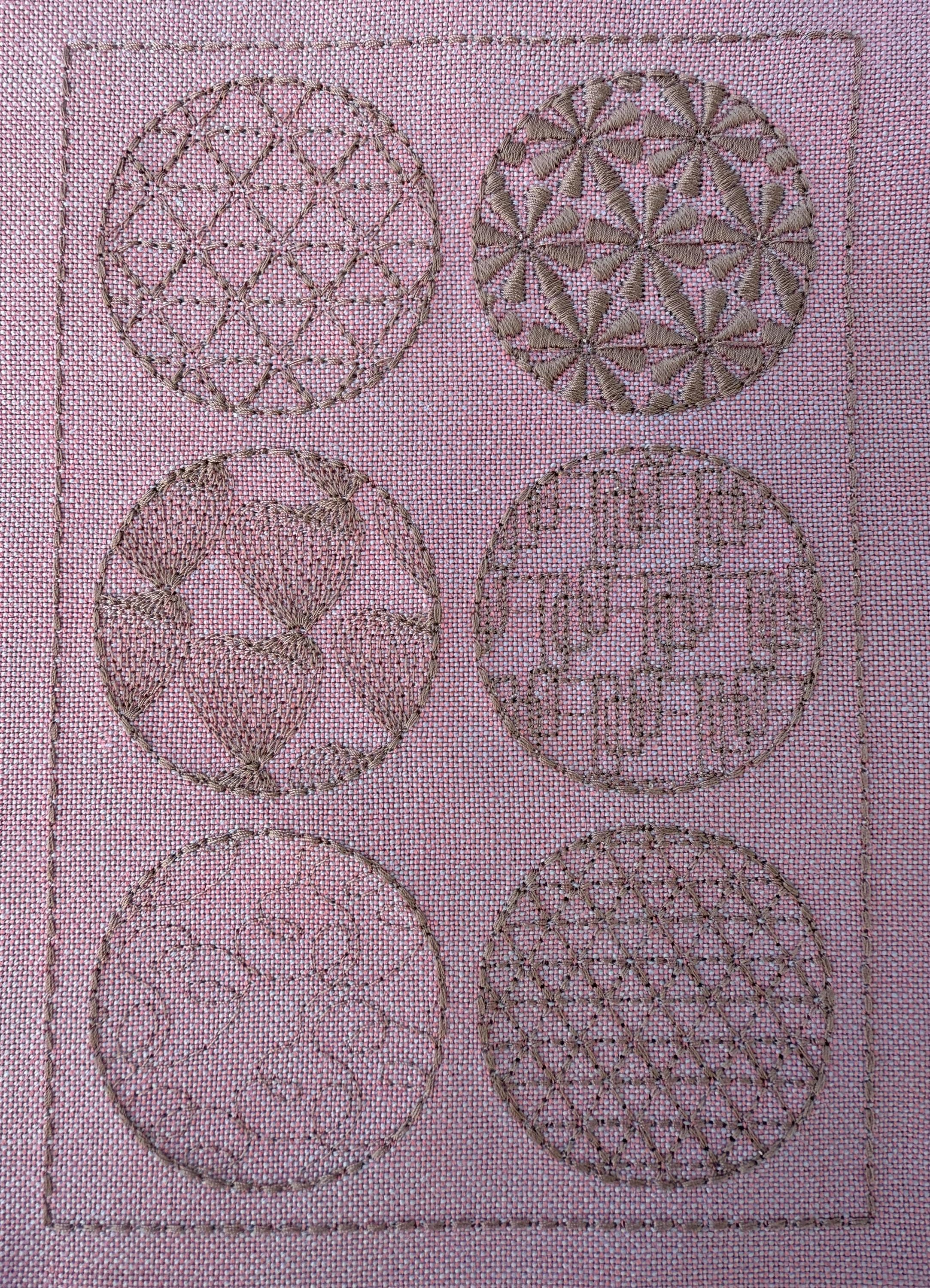 THIS DESIGN PACK celebrates the calm, meditative beauty of Sashiko stitching — this time translated into soft, round 2-inch circles.