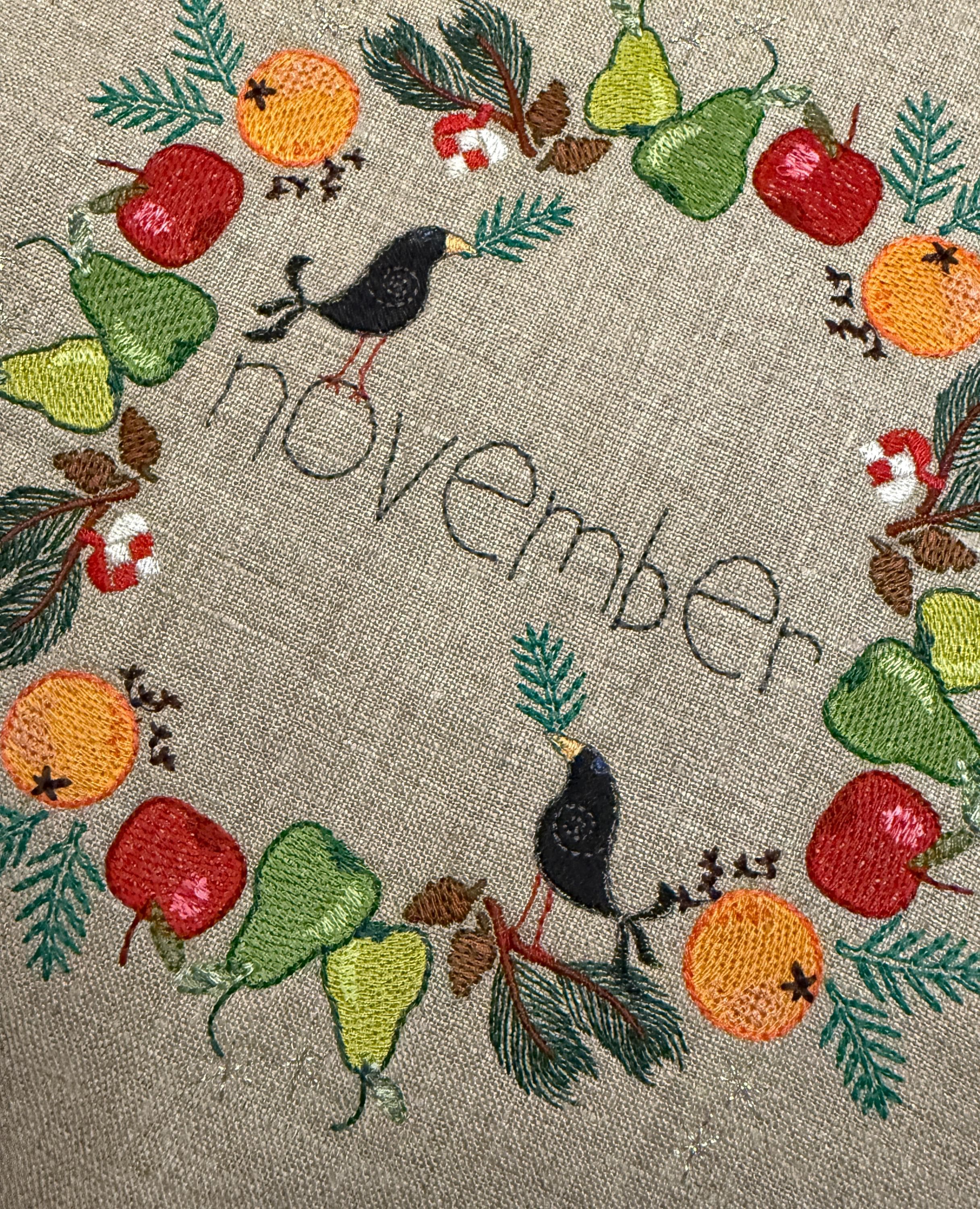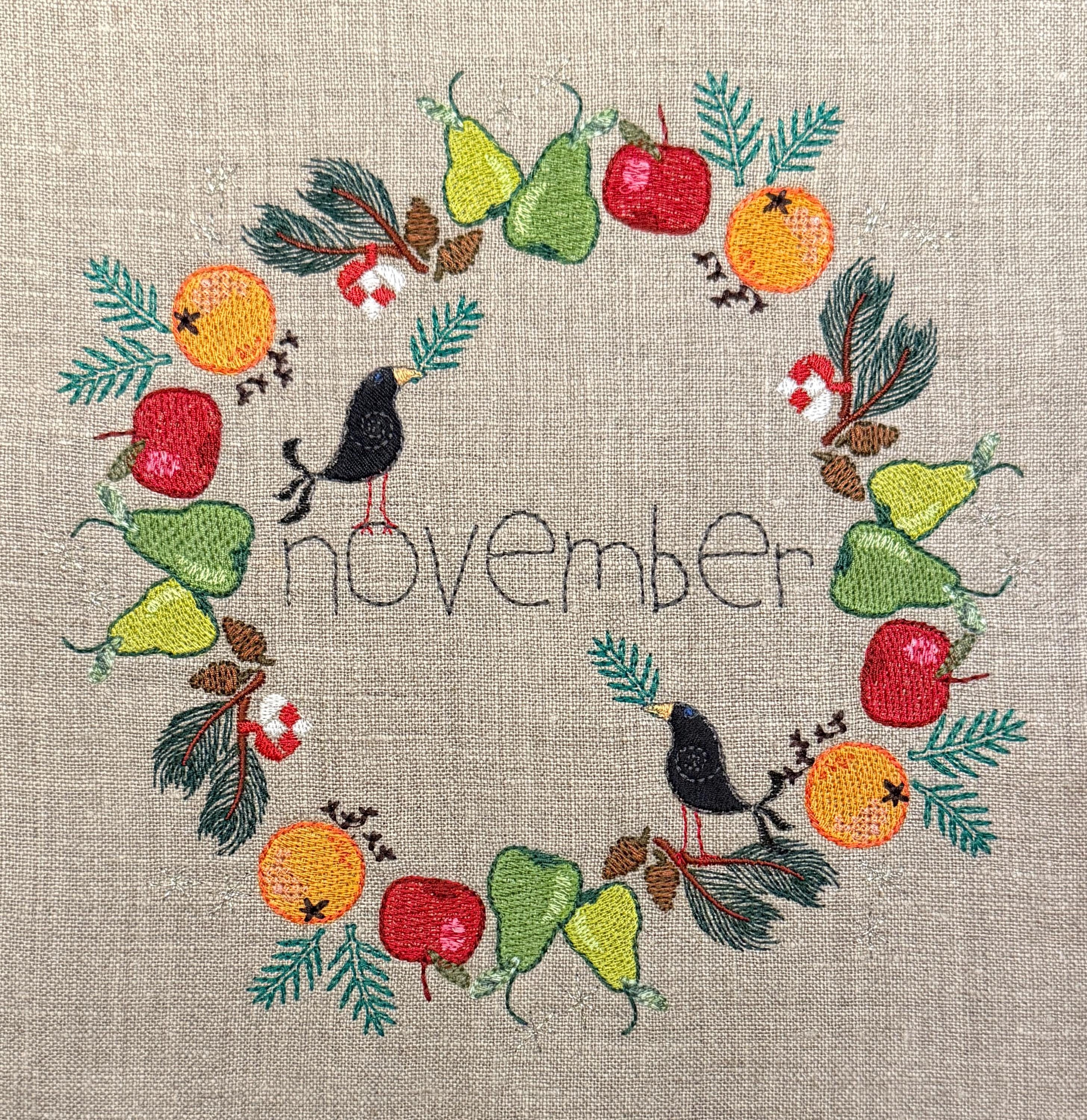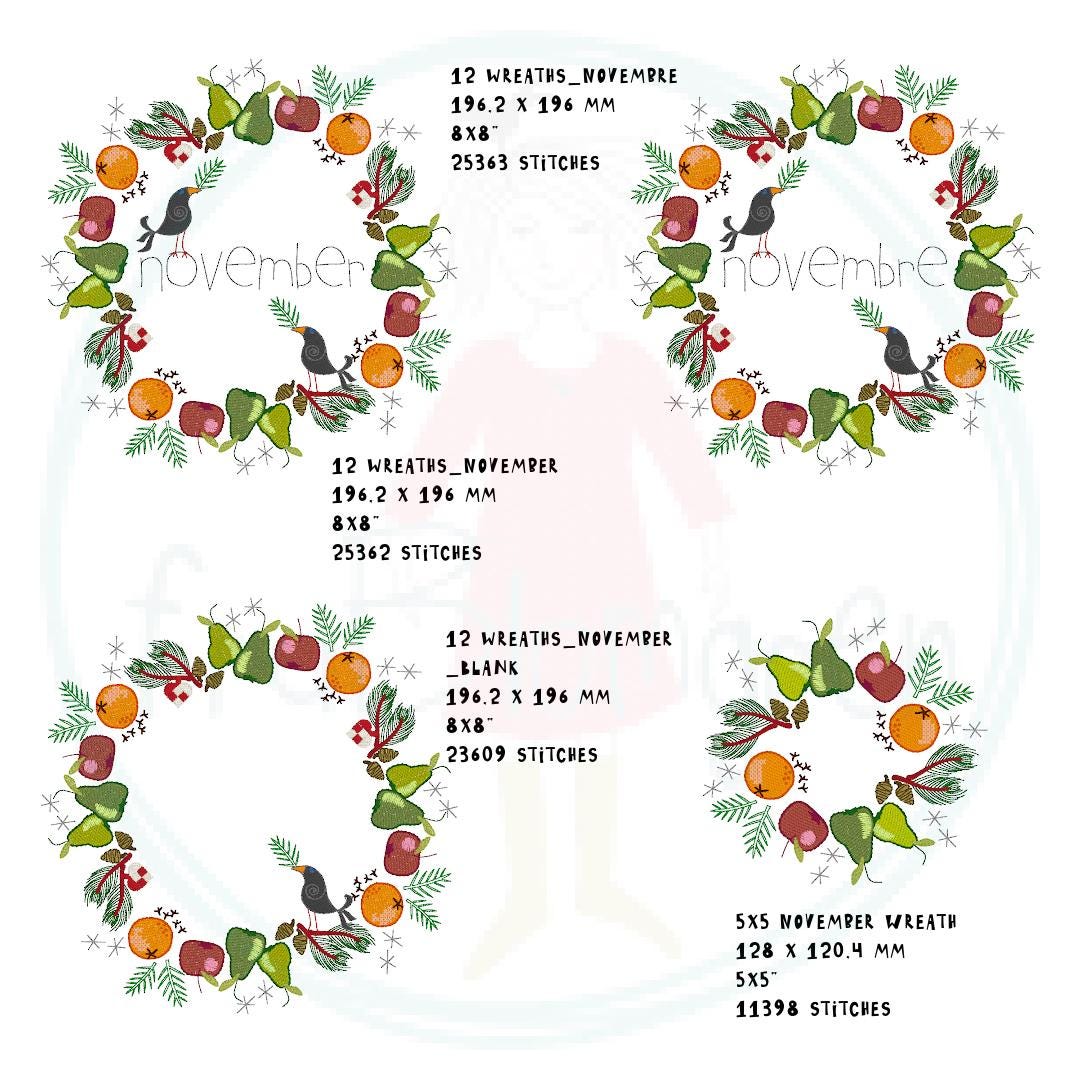 🍐 The November wreath, size 8x8” (20x20 cm) – with text (November in English, November in Danish, German, Swedish, and Novembre in French).
