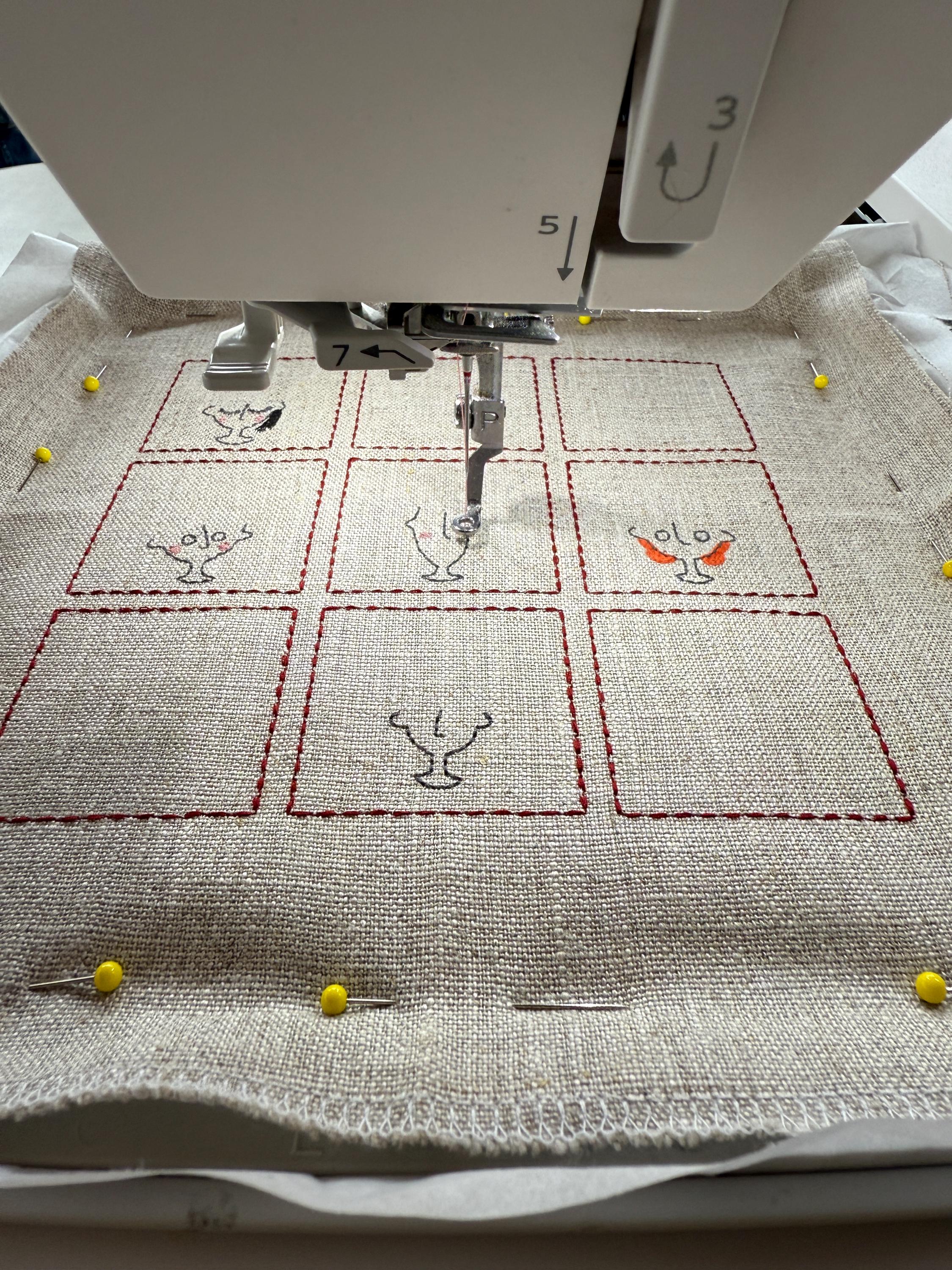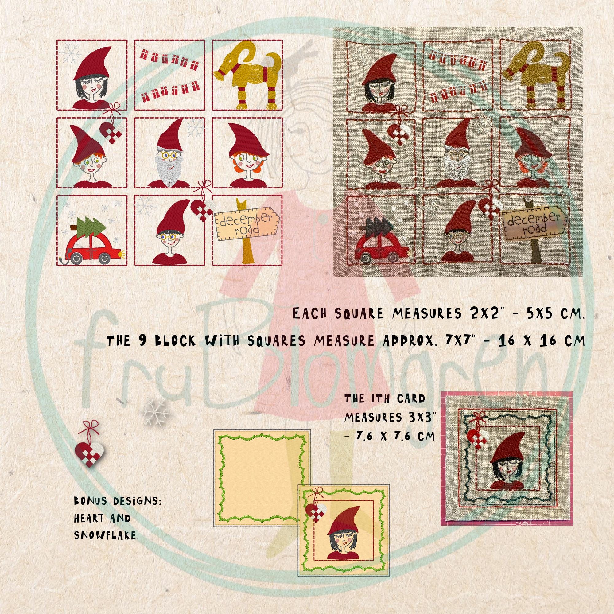 Hand-drawn 2x2” Sashiko-style Christmas squares for your embroidery machine. Mix, match & stitch festive blocks + ITH cards. Instant download.
