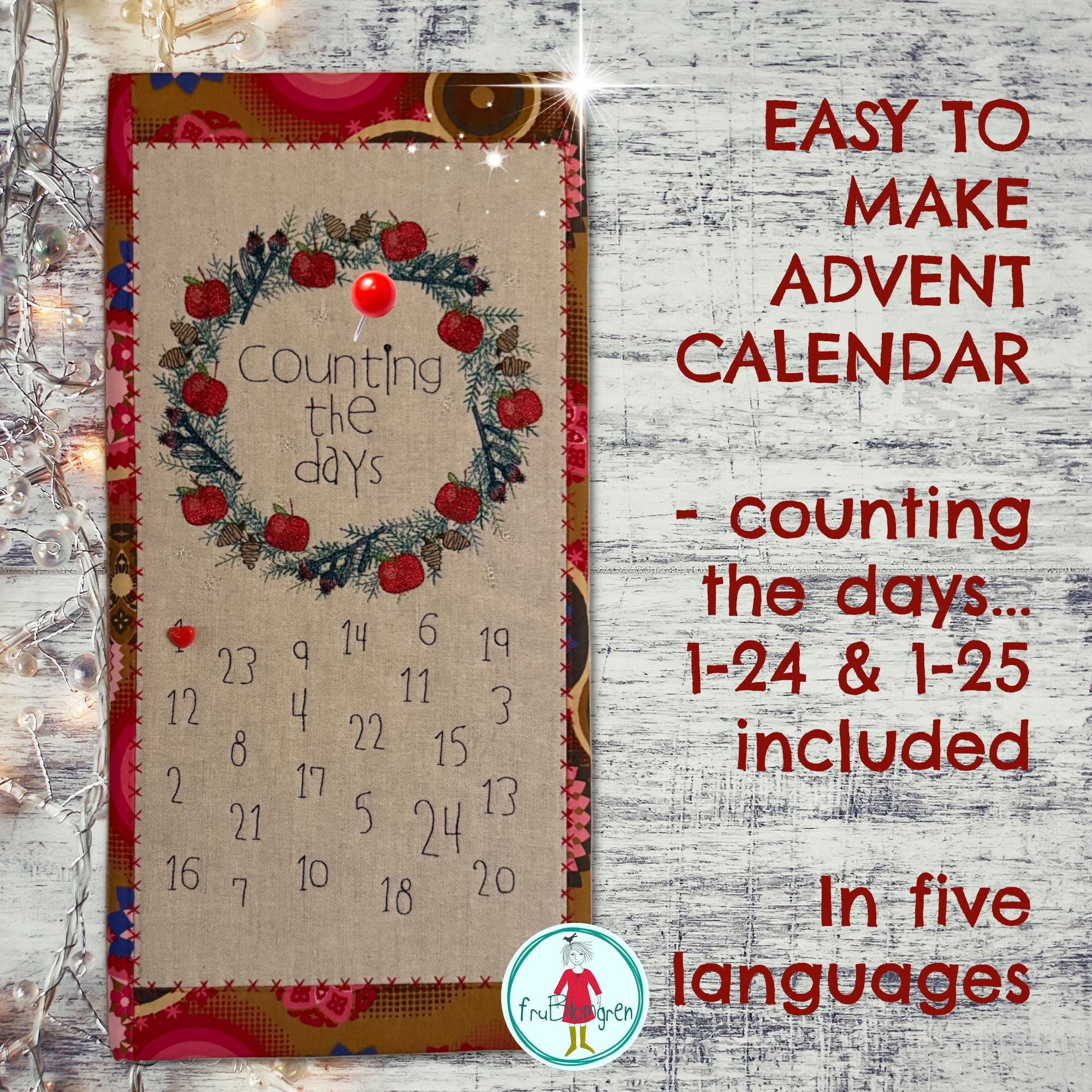 ✨ XXL Advent design — 8x14" (20×36 cm) in English, German, French, Swedish and Danish - The English one with the numbers from 1-24 and 1-25