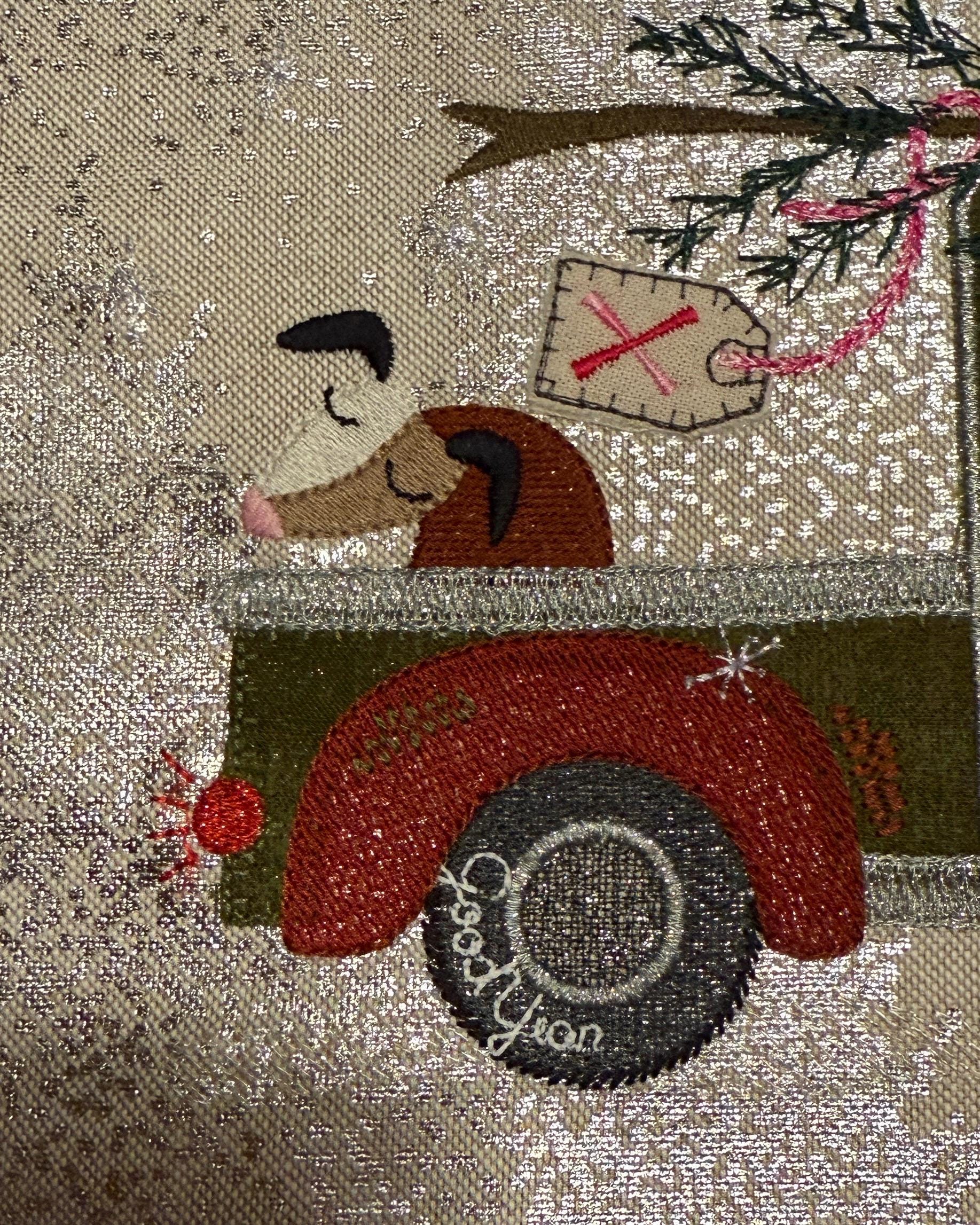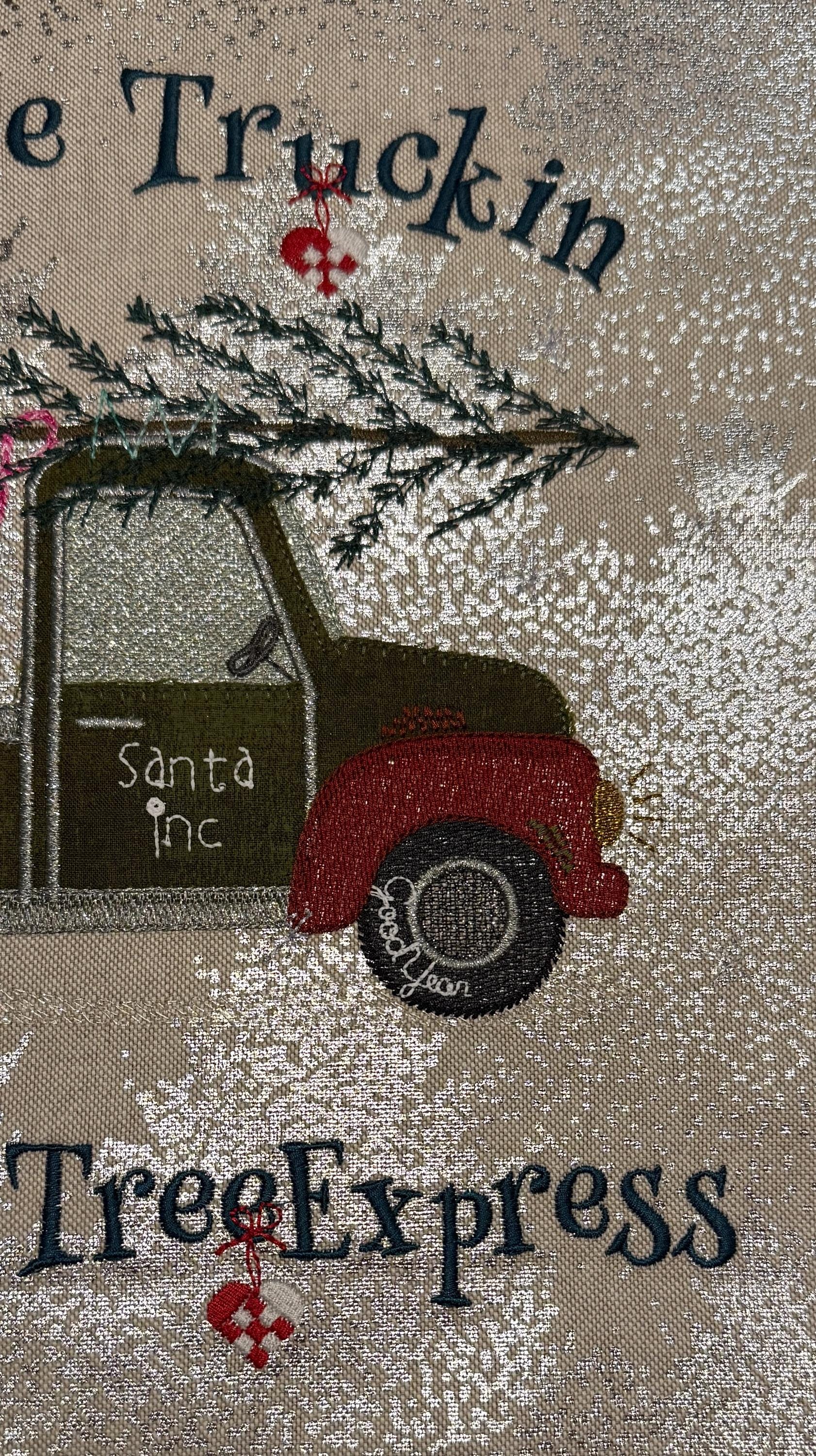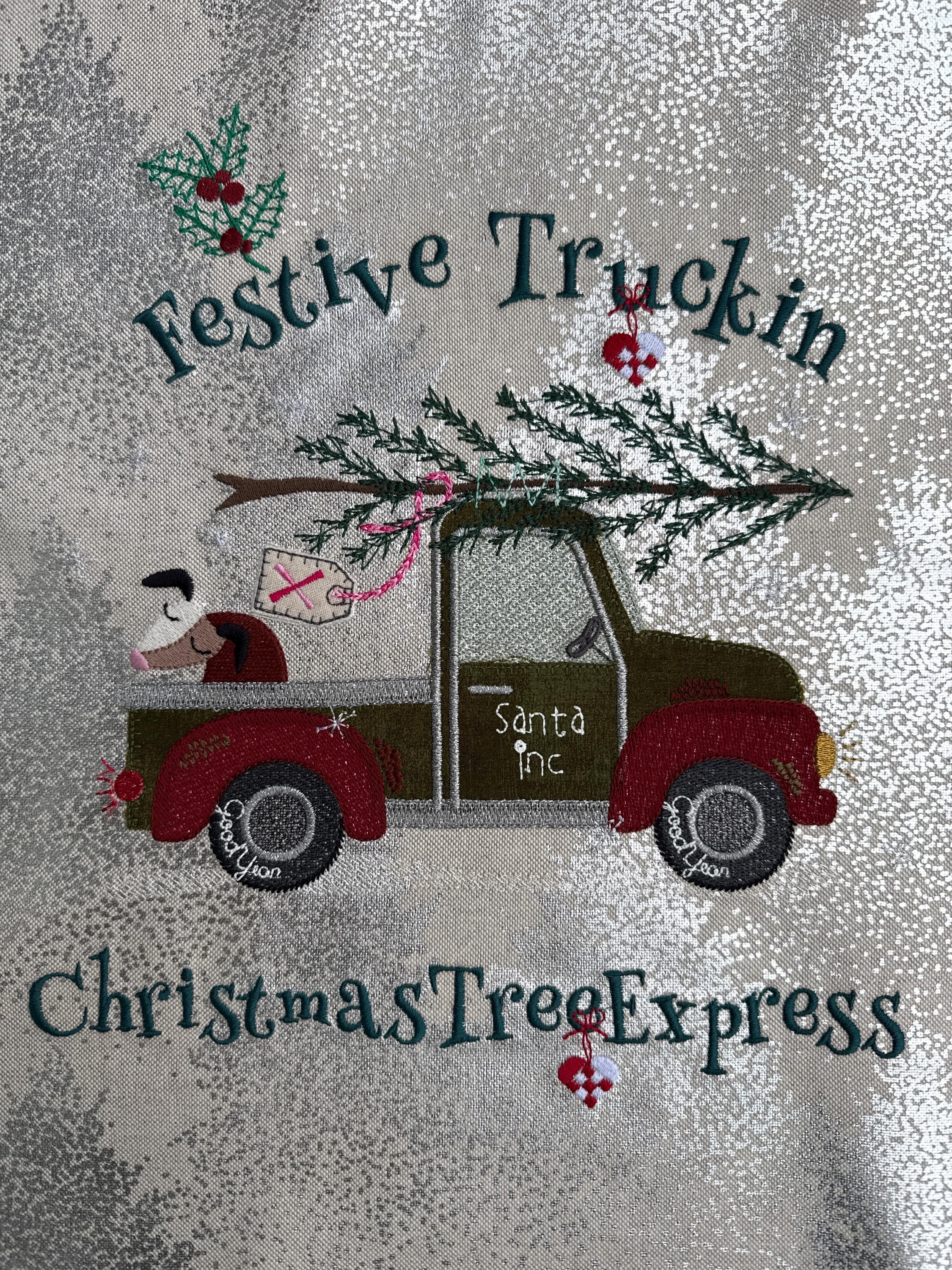 Large Christmas Truck design (6x10") mix of appliqué and embroidery