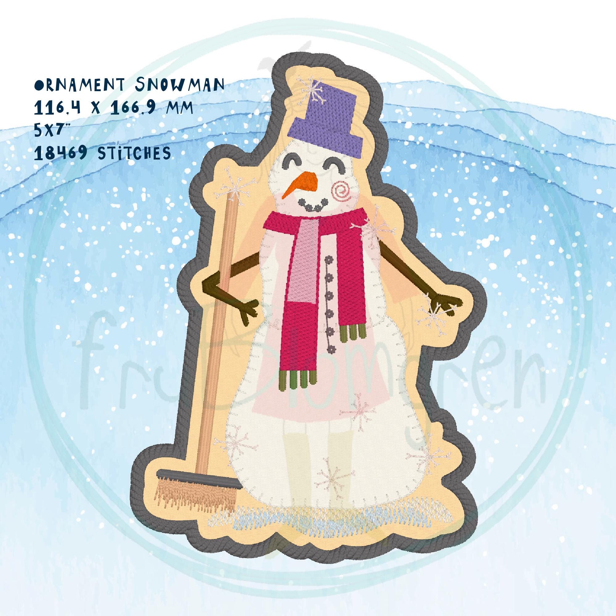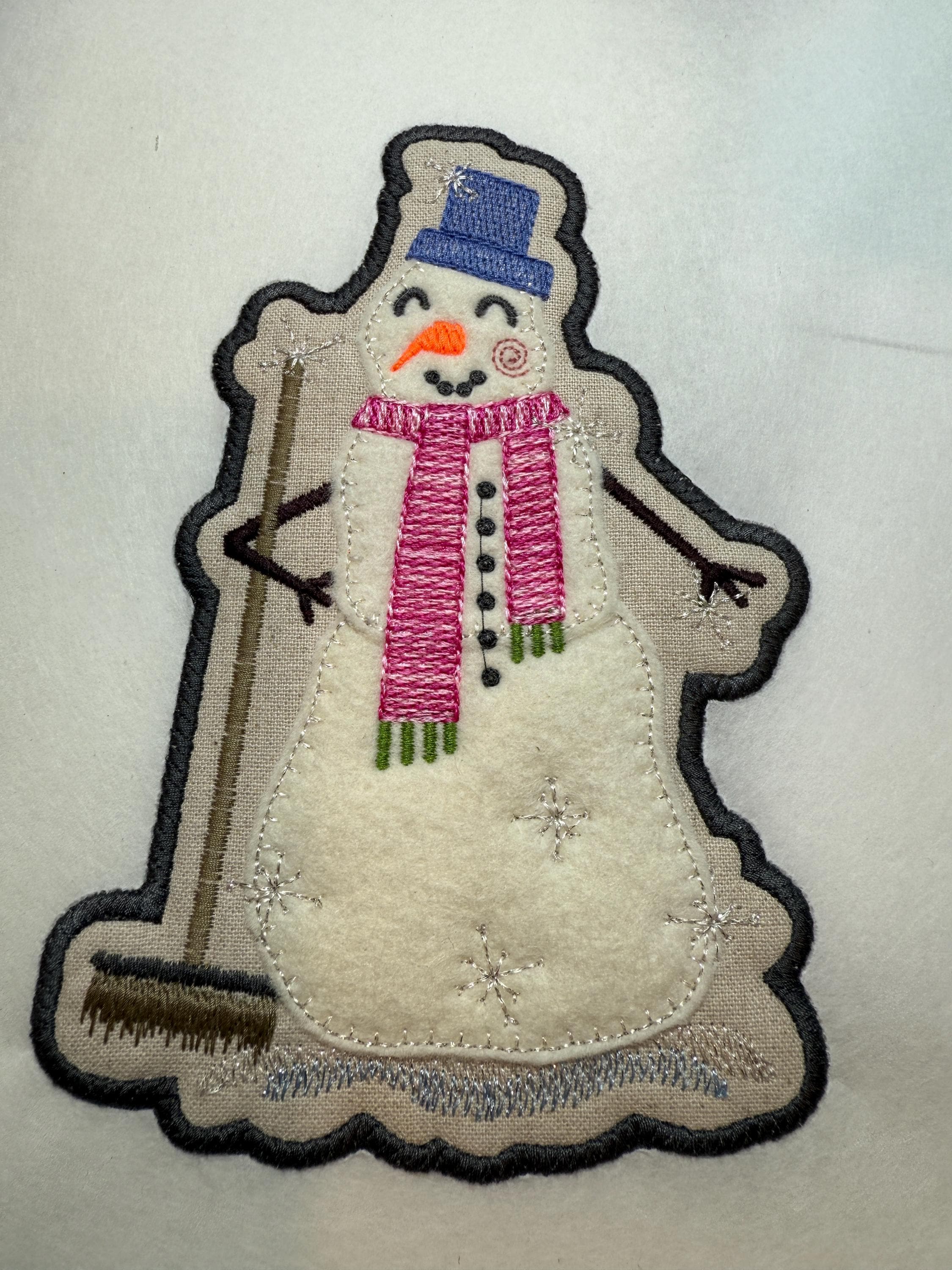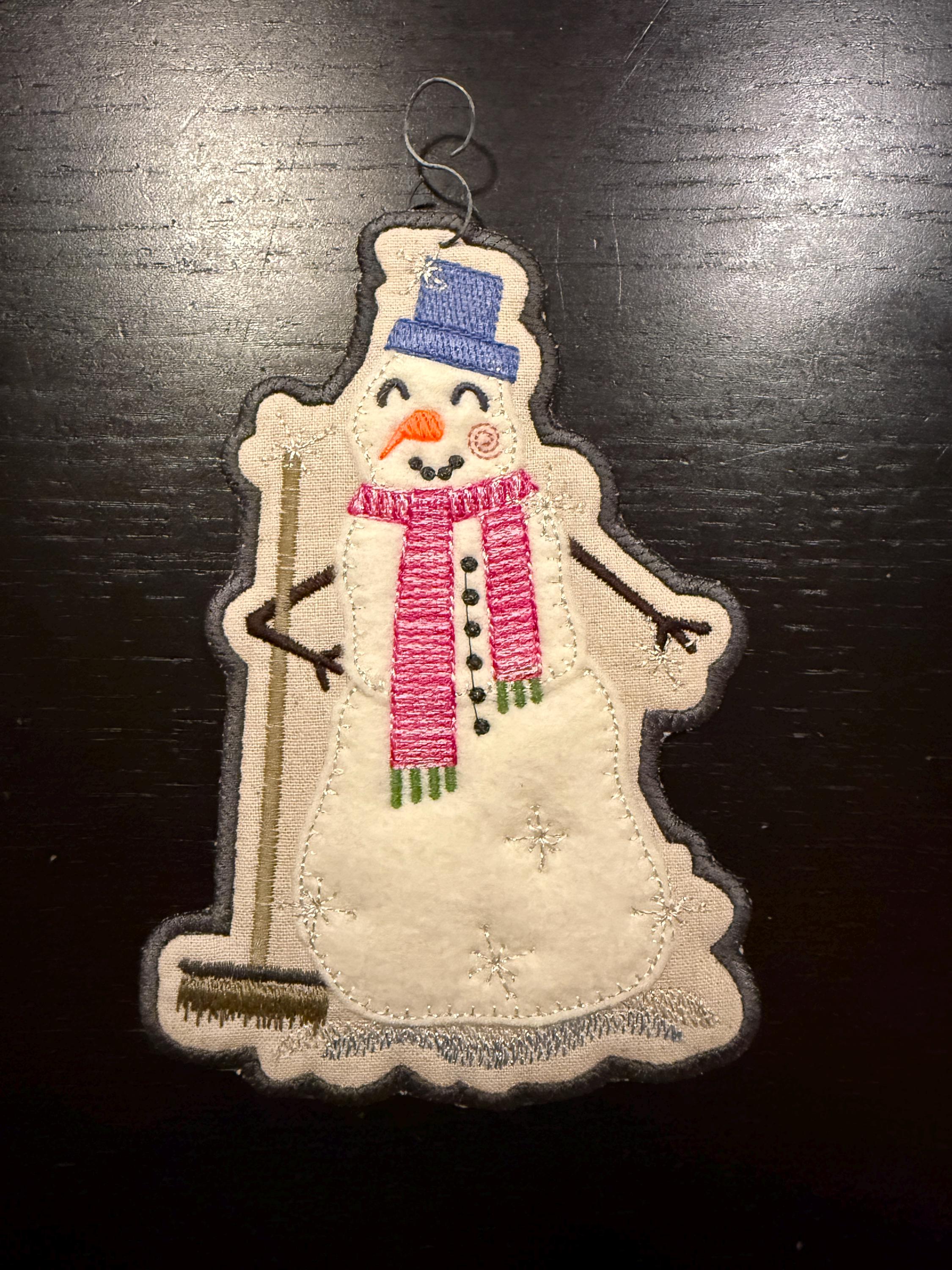 Bring a little winter cosiness into your home with this detailed appliqué snowman ornament.