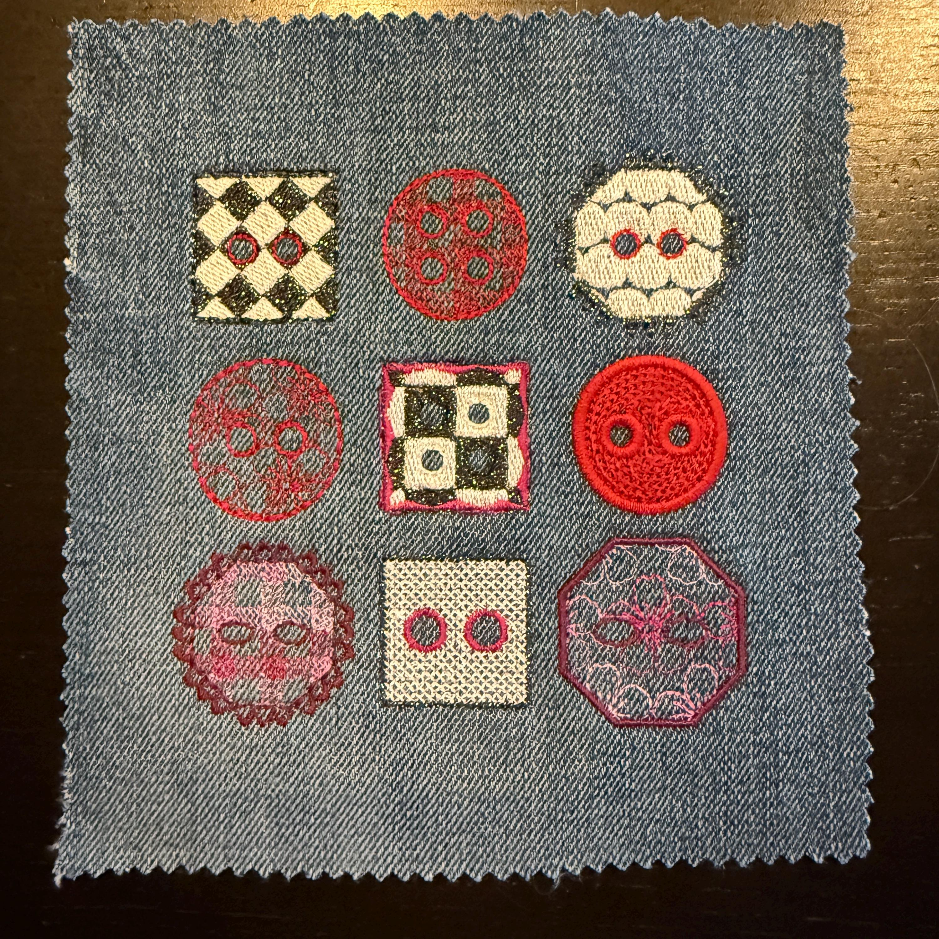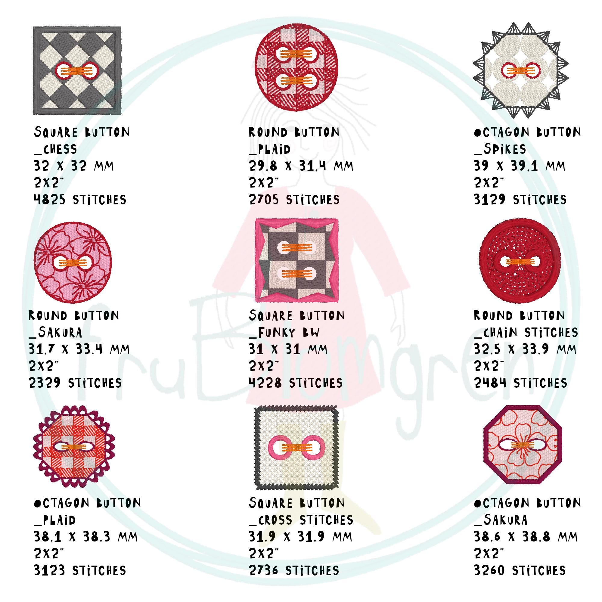 • 9 embroidered button designs as single motifs