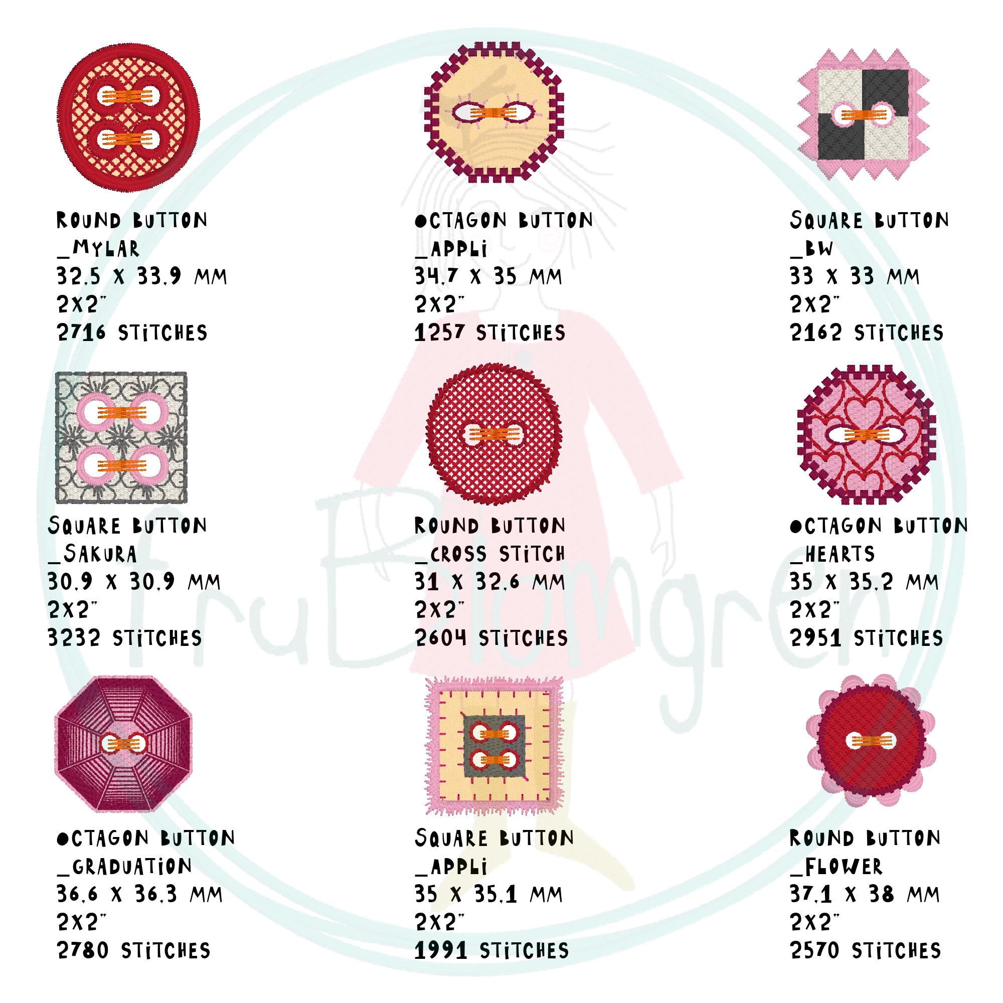 • 9 embroidered button designs as single motifs