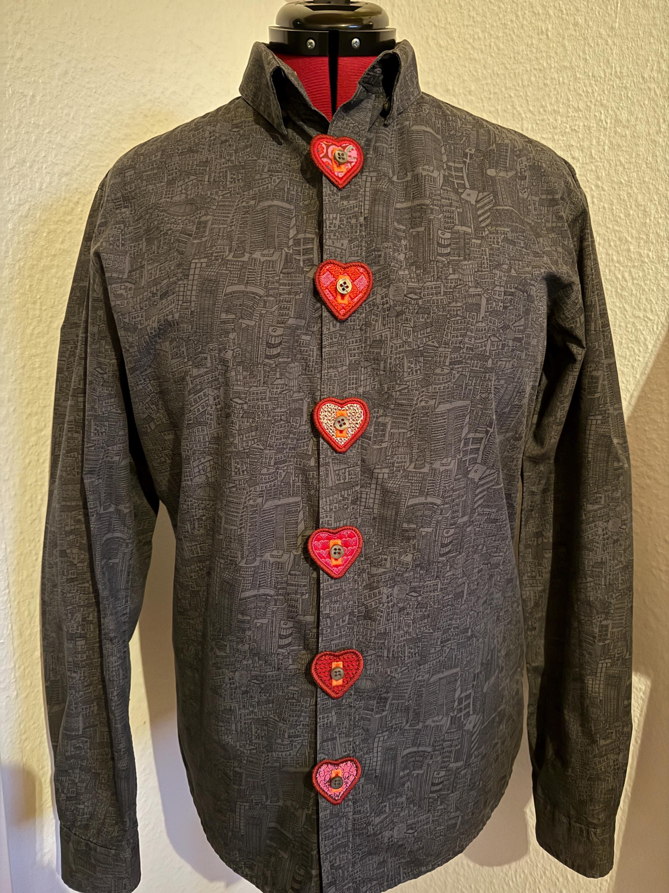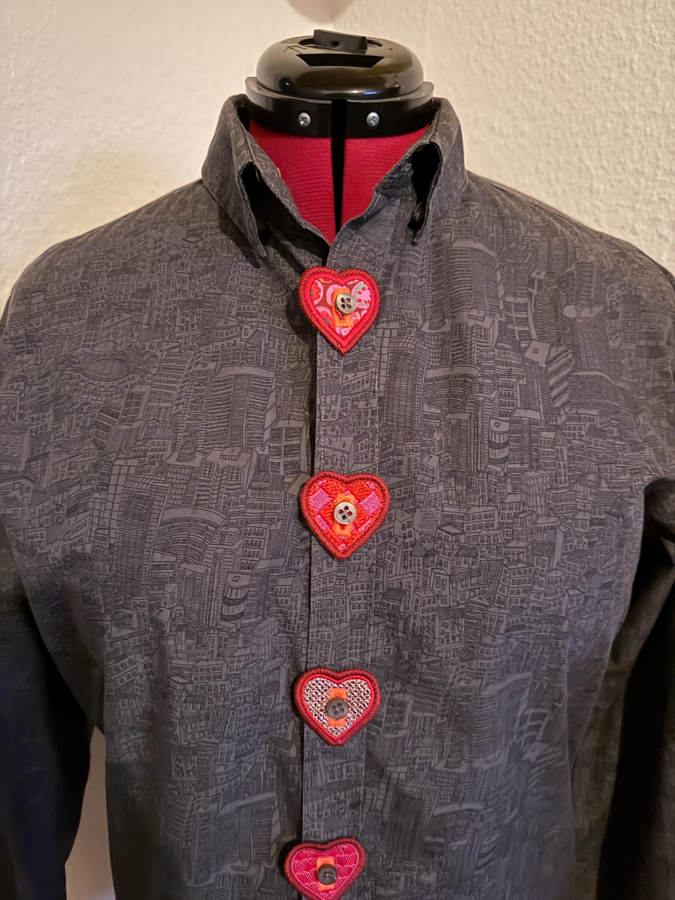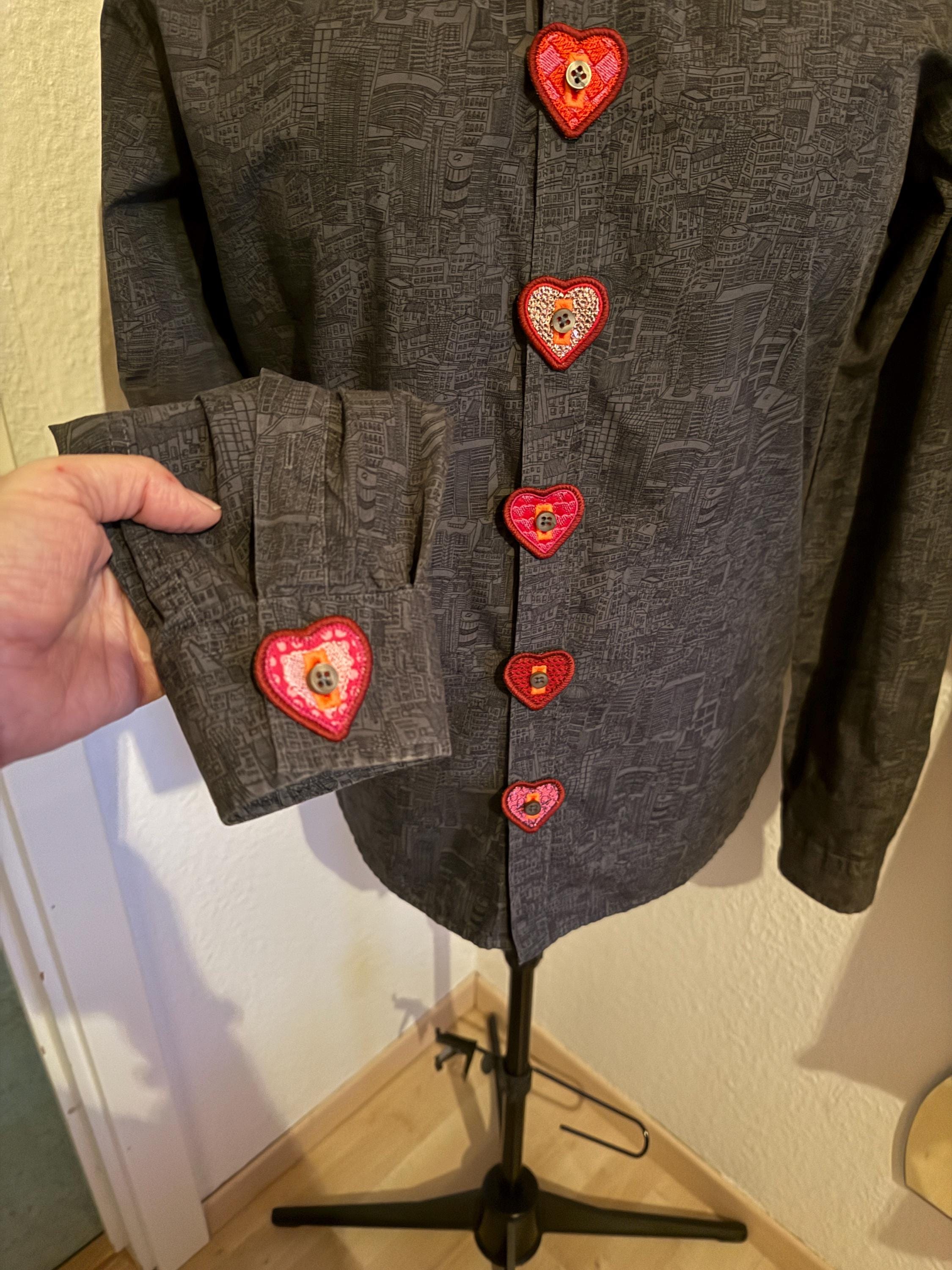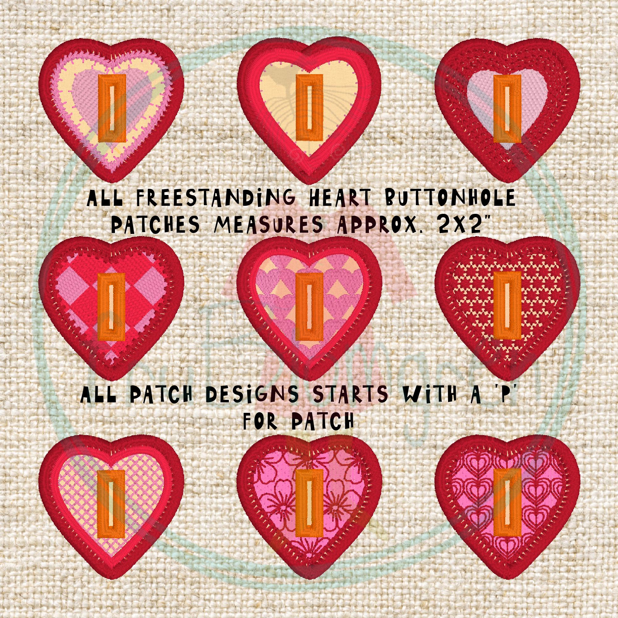 • 9 matching heart-shaped buttonholes as freestanding patches