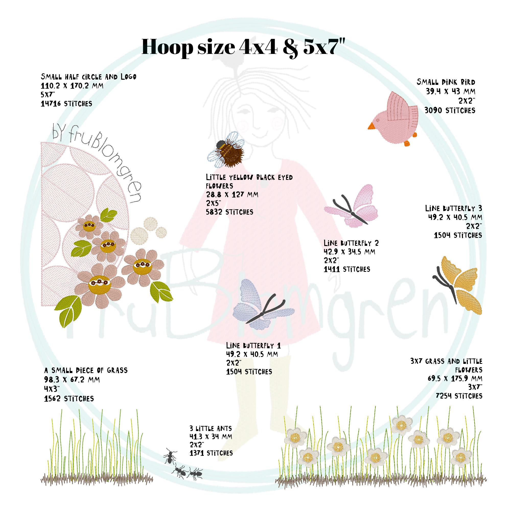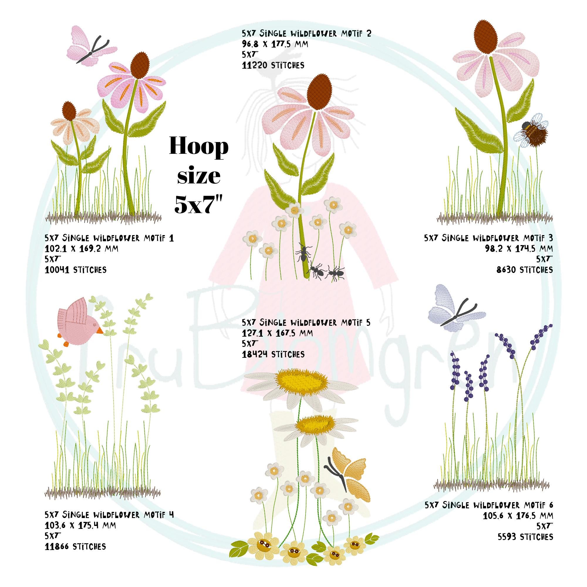 Inspired by wildflowers, garden moments, and the quiet beauty of nature, these designs are not realistic reproductions, but playful interpretations with a soft, light and airy stitch.