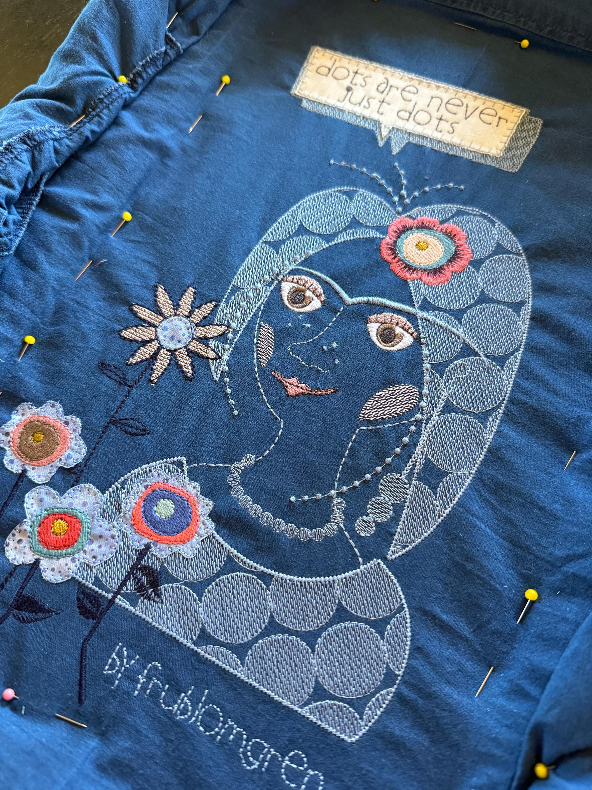 A mix of dot flowers (appliqué + embroidery)