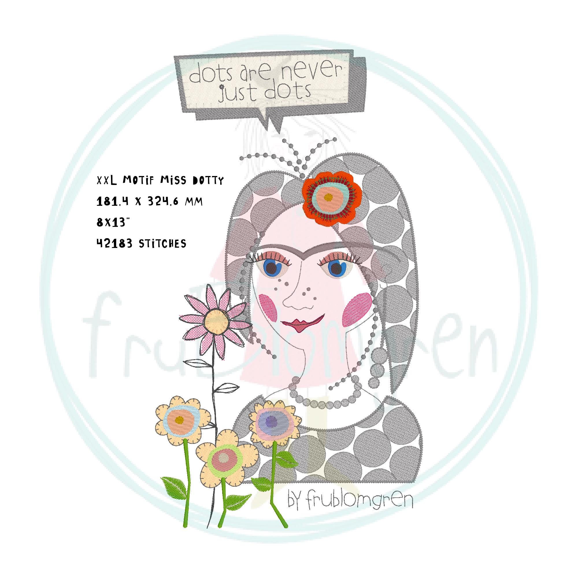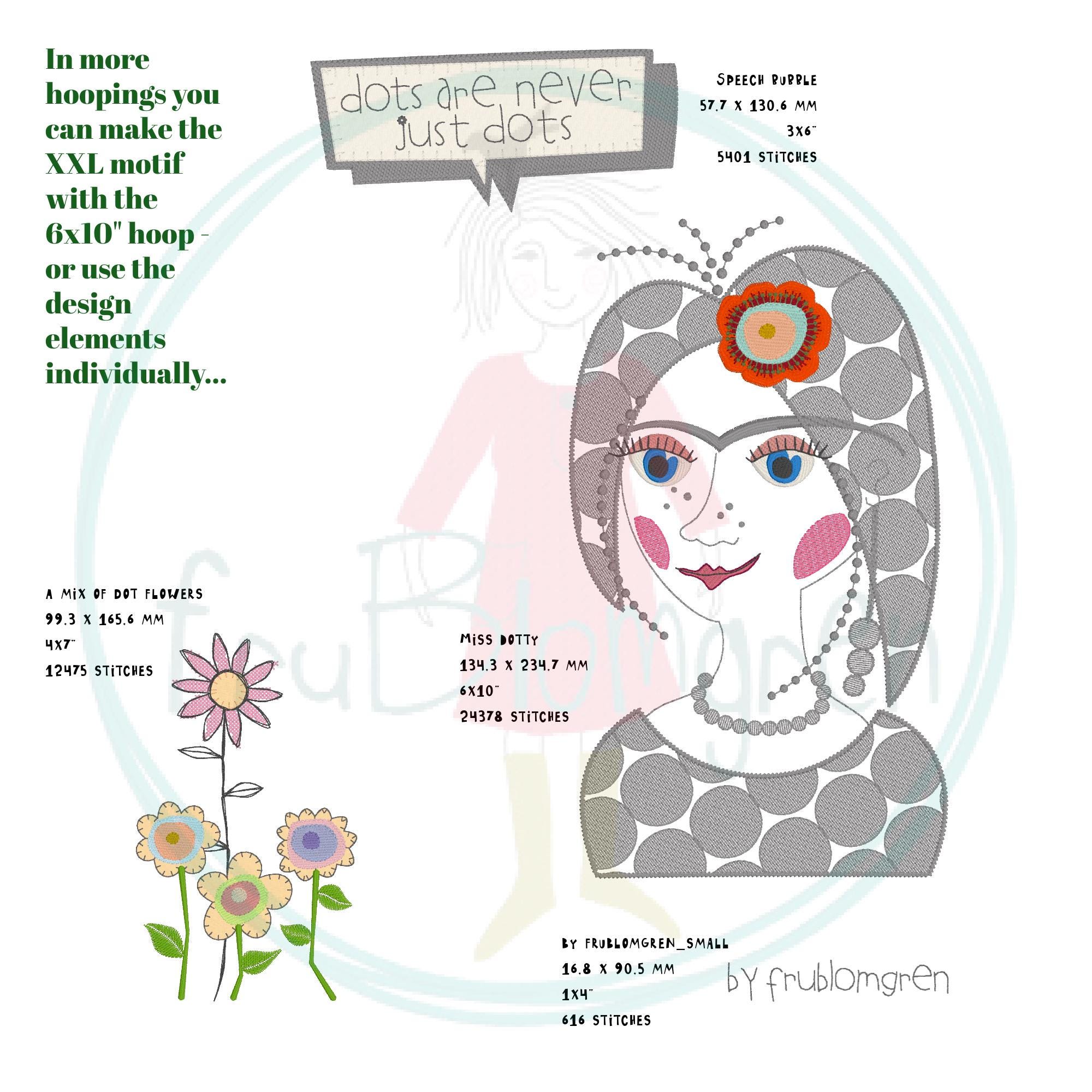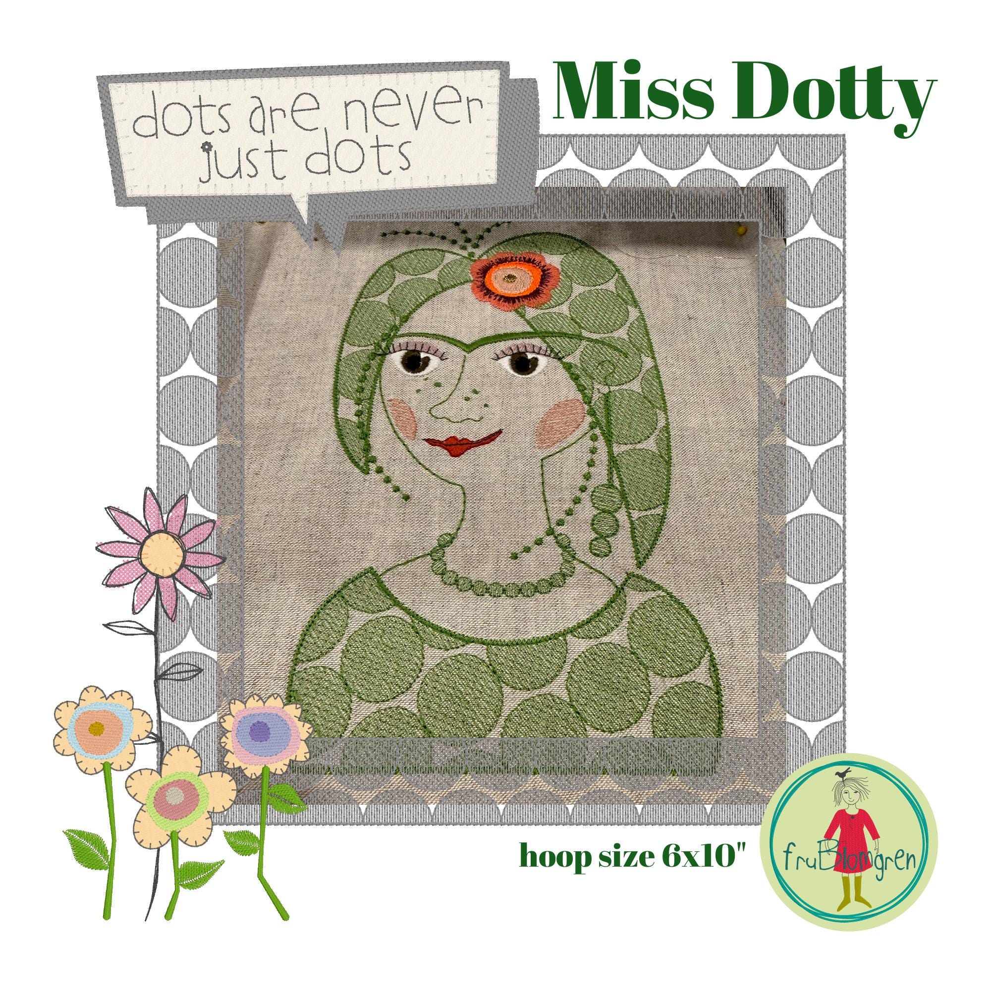 Miss Dotty motif (6x10” hoop)