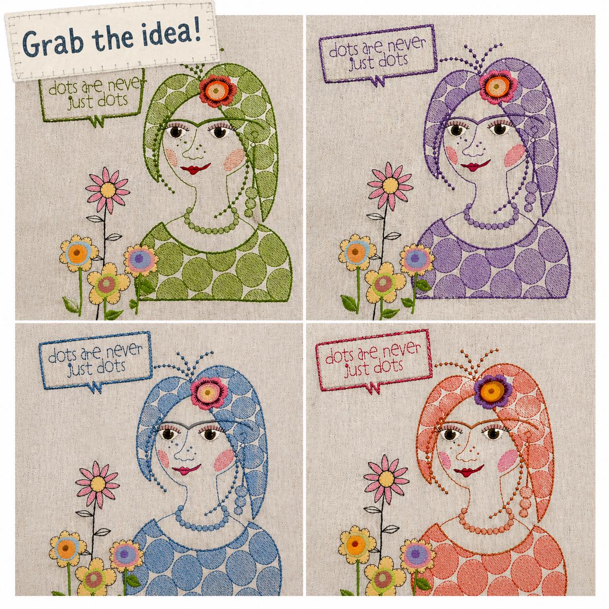 Miss Dotty – a playful and slightly quirky character from my creative universe – now turned into a versatile machine embroidery design pack.